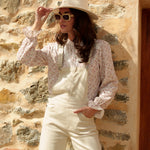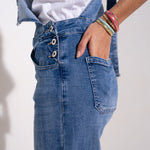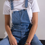 Salopette en denim, avec une poche avant et une coupe large au niveau des jambes pour un look chic assuré.