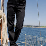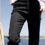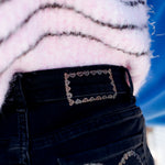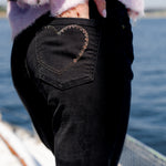 Détails : Broderies cœur sur les poches arrière, toile denim noire délavée