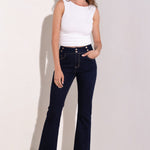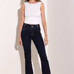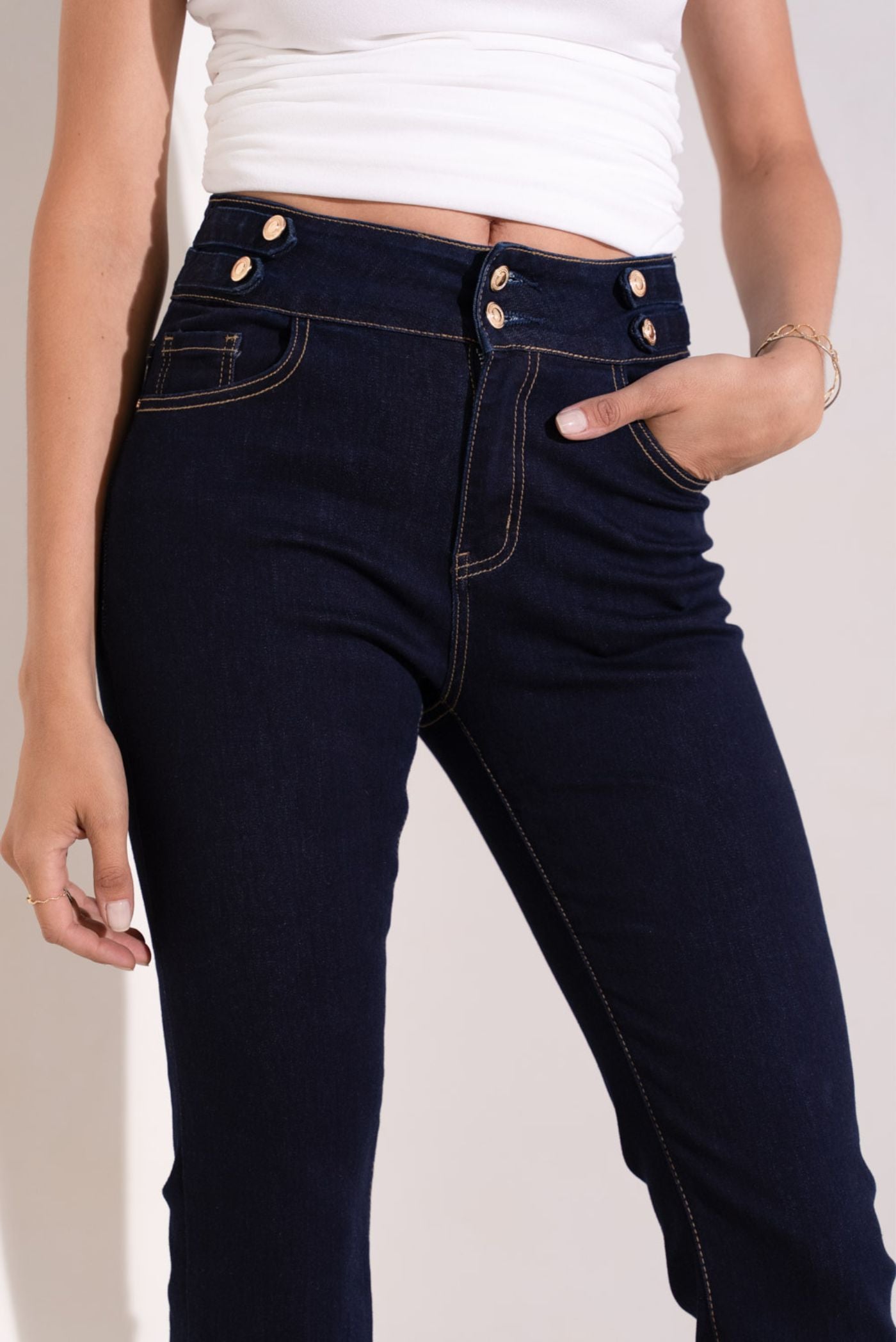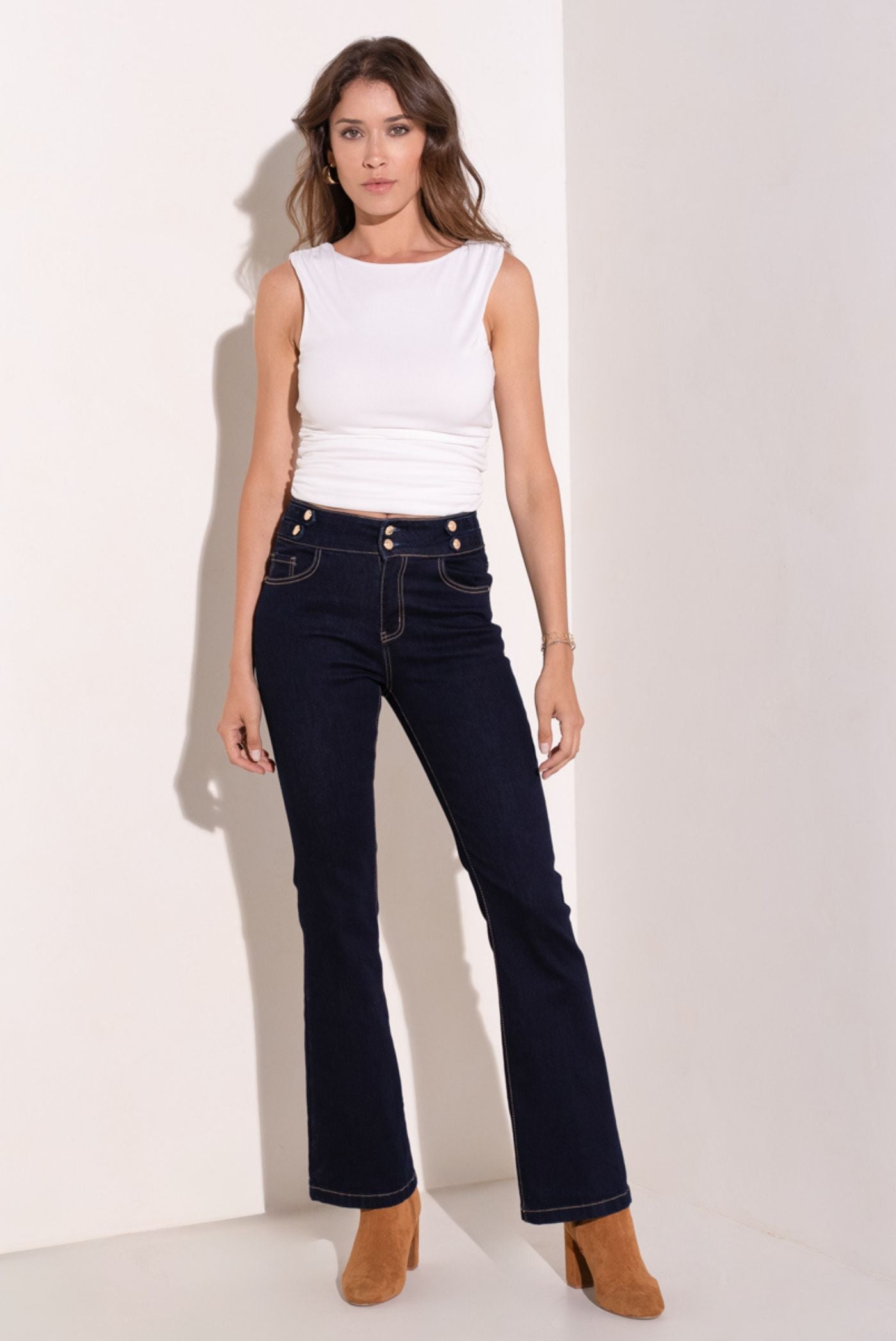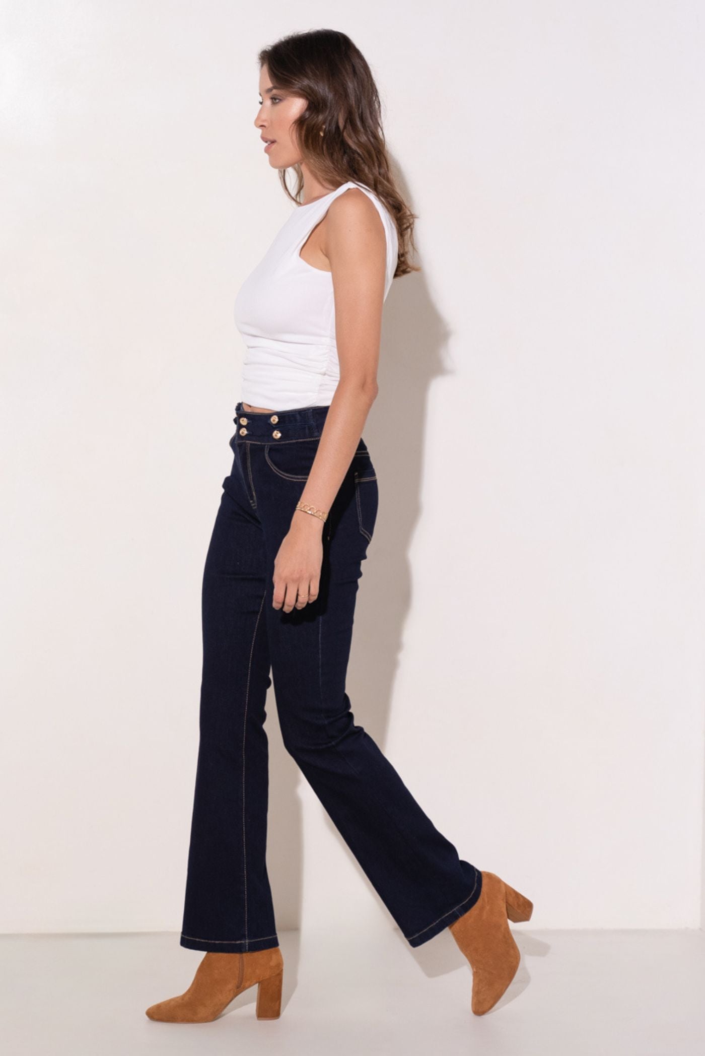 - Design: Pantalon taille haute, rehaussé de délicates languettes latérales surmontées de boutons en or. Un choix qui marie élégamment style et détails raffiné