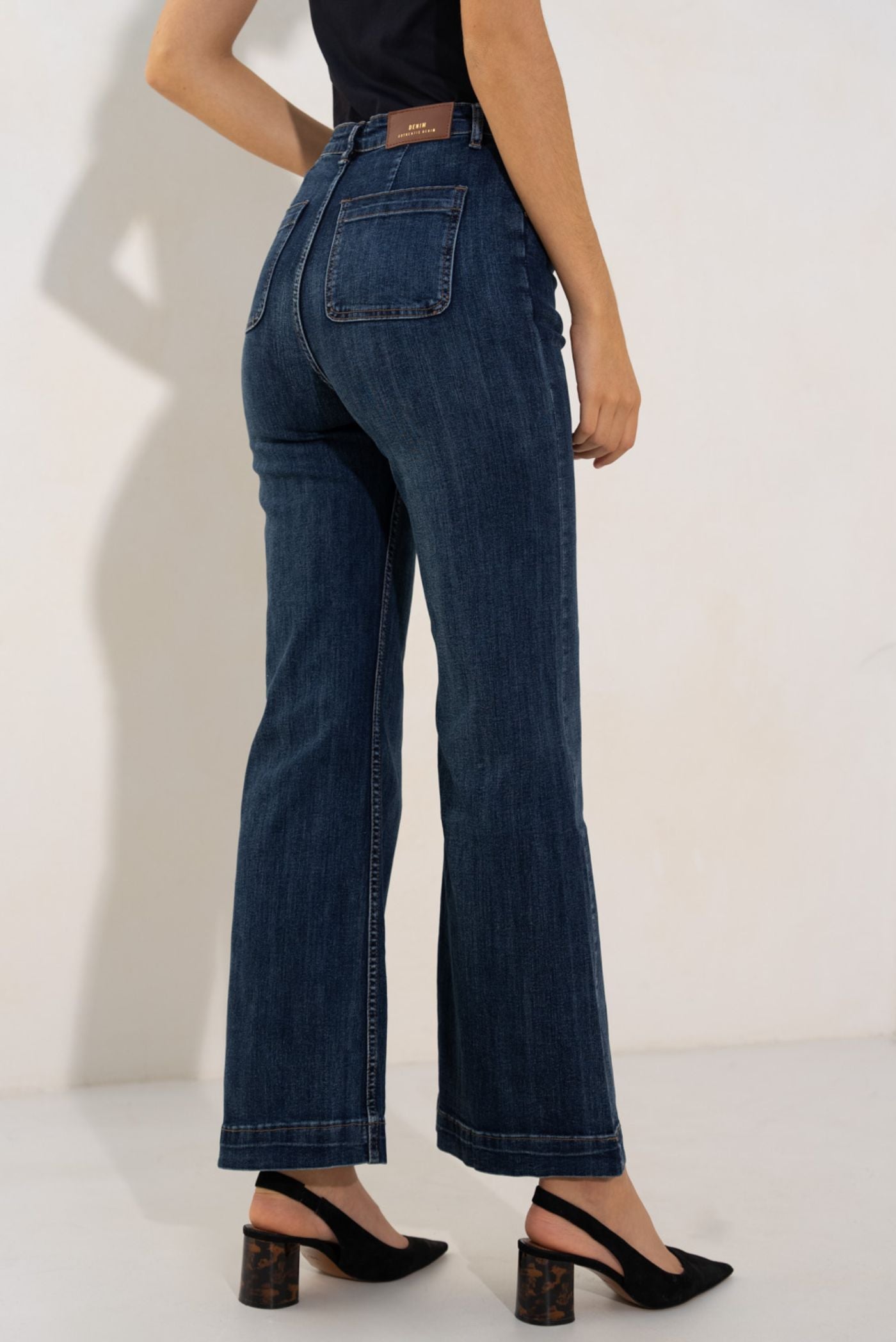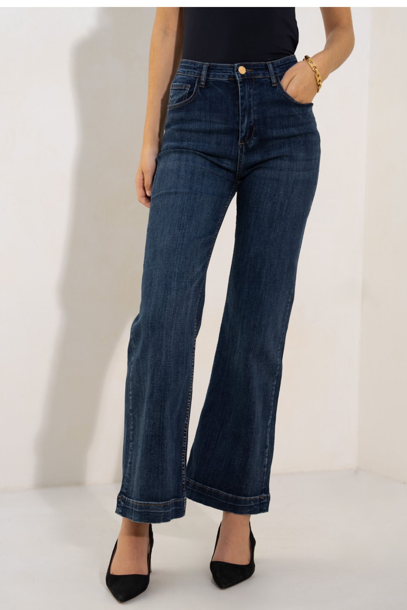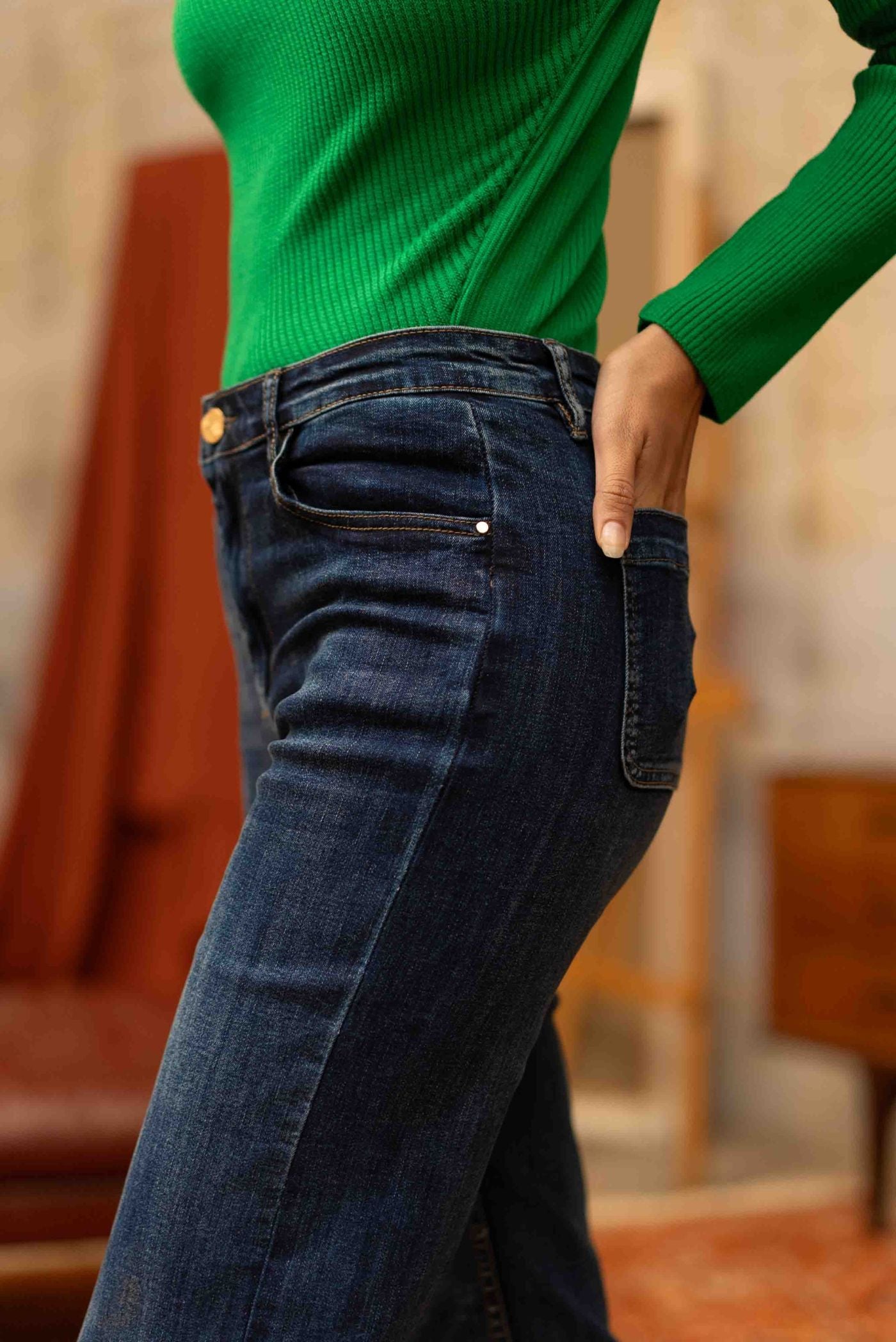 - Design: Pantalon en denim bleu droite large en rappel aux années 60'. Une coupe à la fois chic et intemporel.
