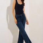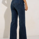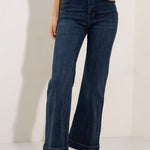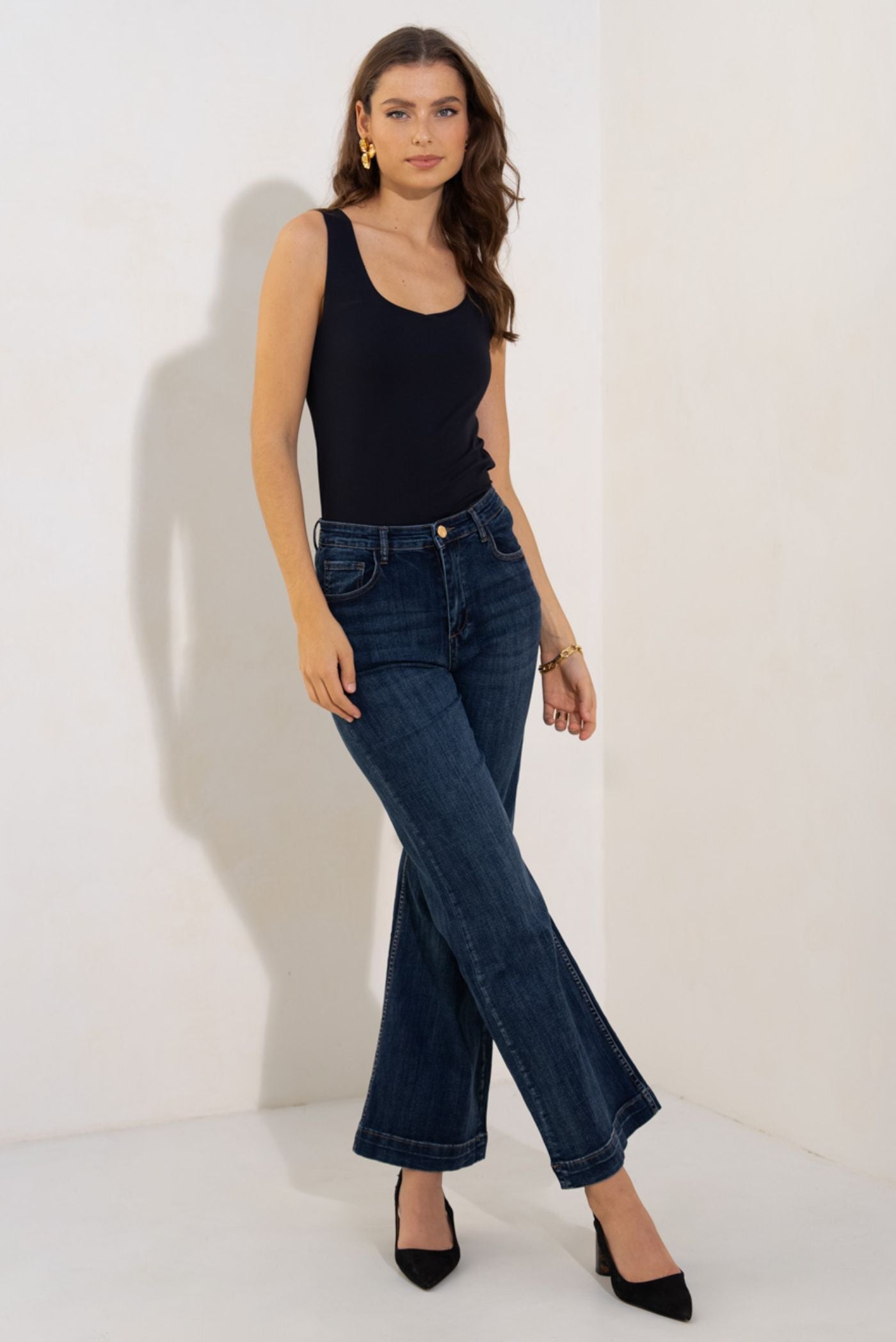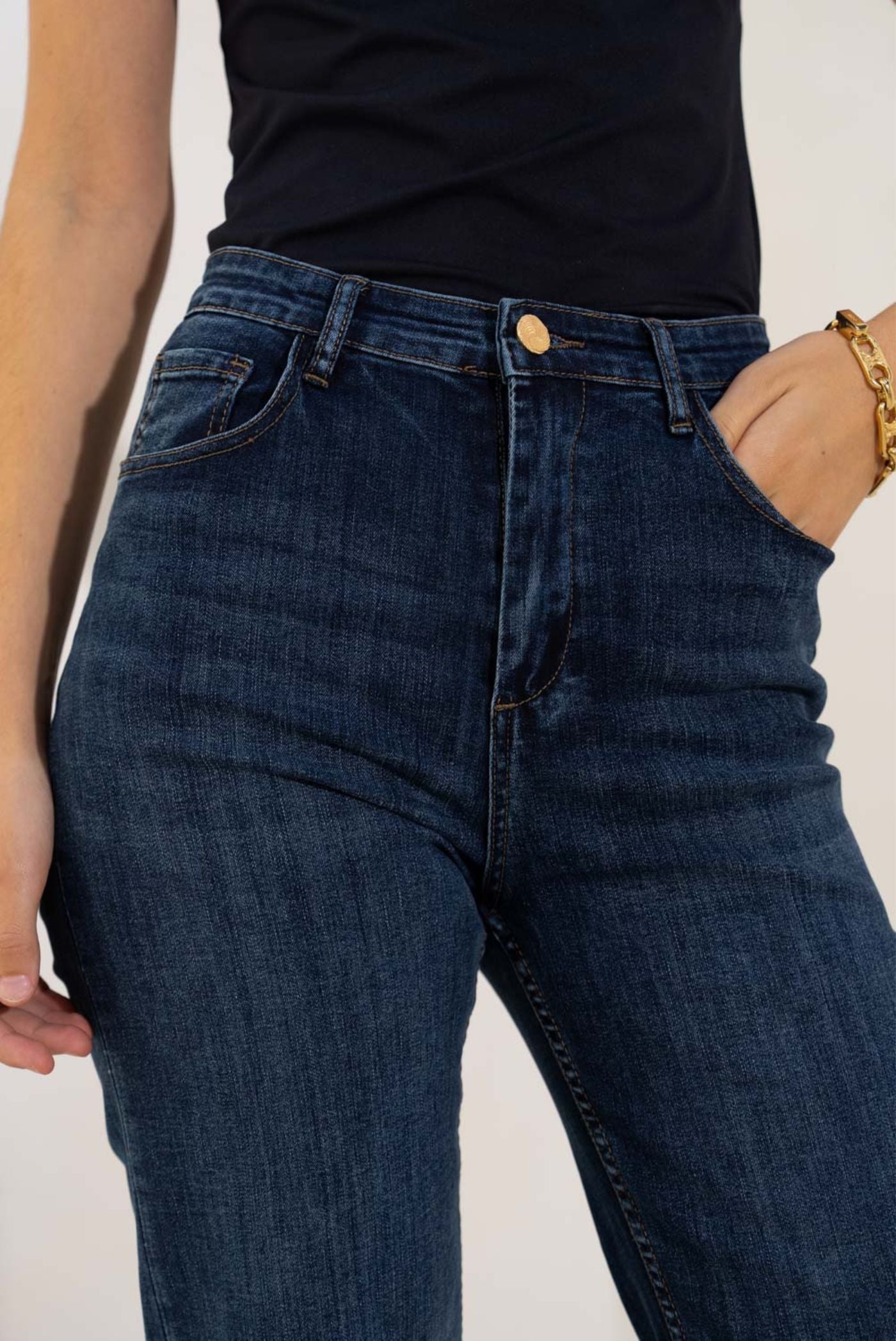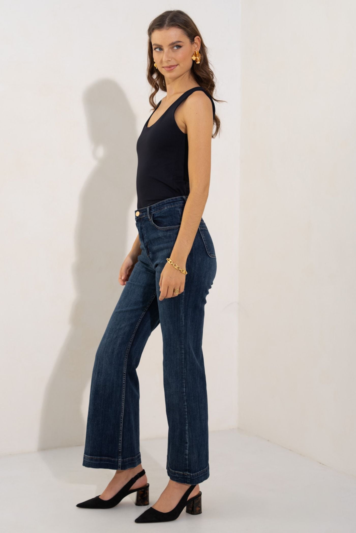 - Design: Pantalon en denim bleu droite large en rappel aux années 60'. Une coupe à la fois chic et intemporel.
