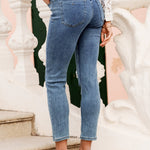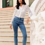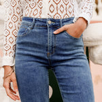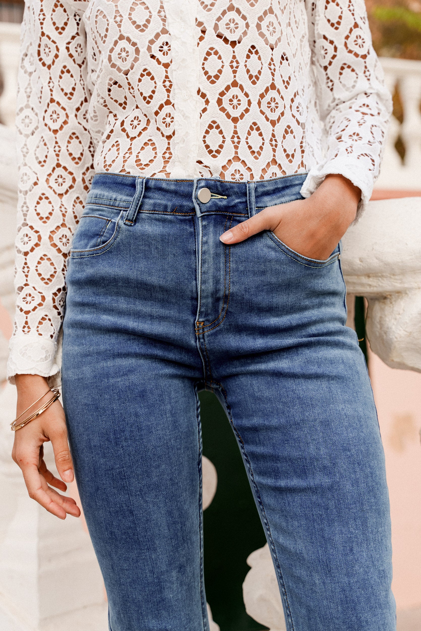 Le jean Marline présente une coupe droite, une taille semi-haute, et une silhouette droite au bas du pantalon, sans toucher à rien en dessous. Confectionné en coton stretch denim, ce jean offre un confort optimal et une coupe intemporelle.