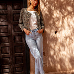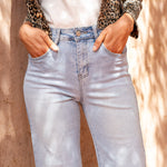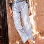 Jean wide leg bleu très clair avec des poches avant et arrière classiques