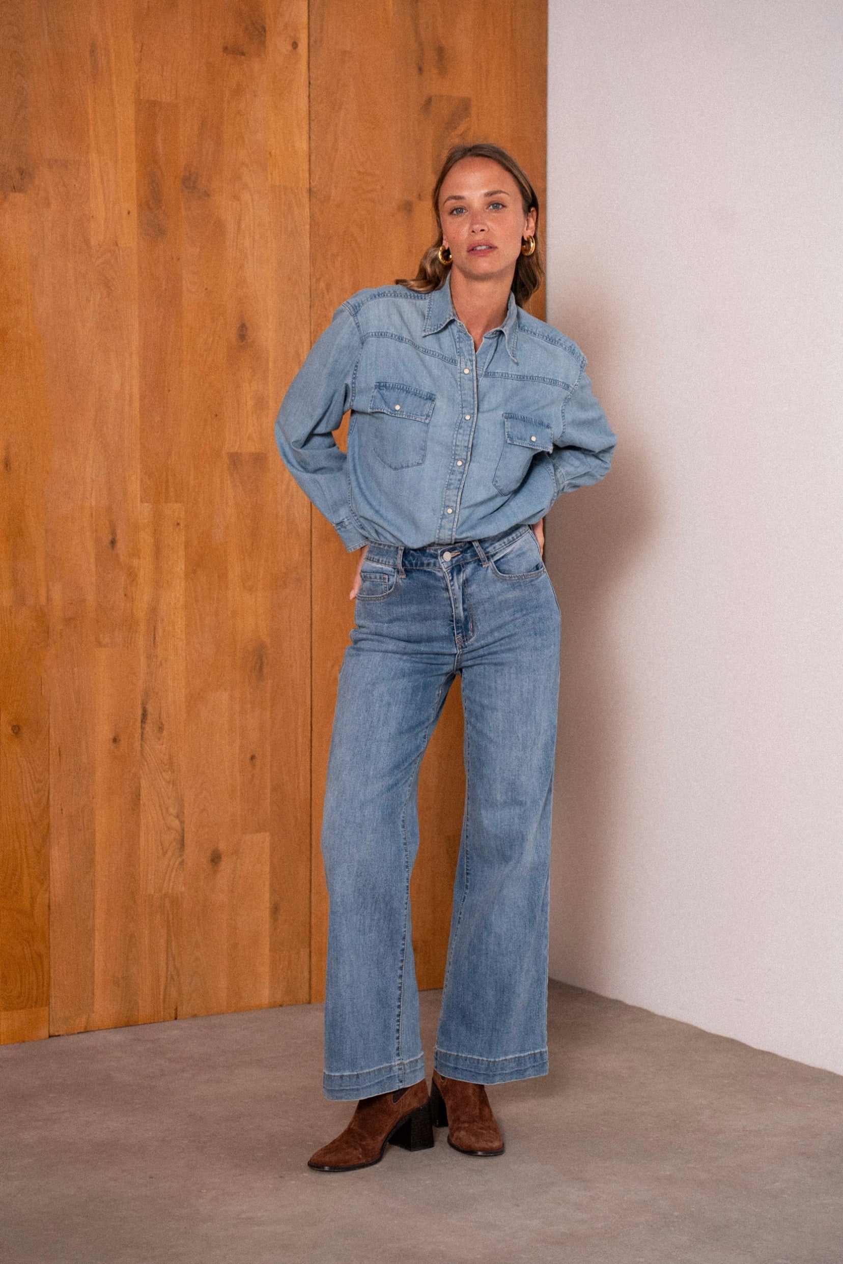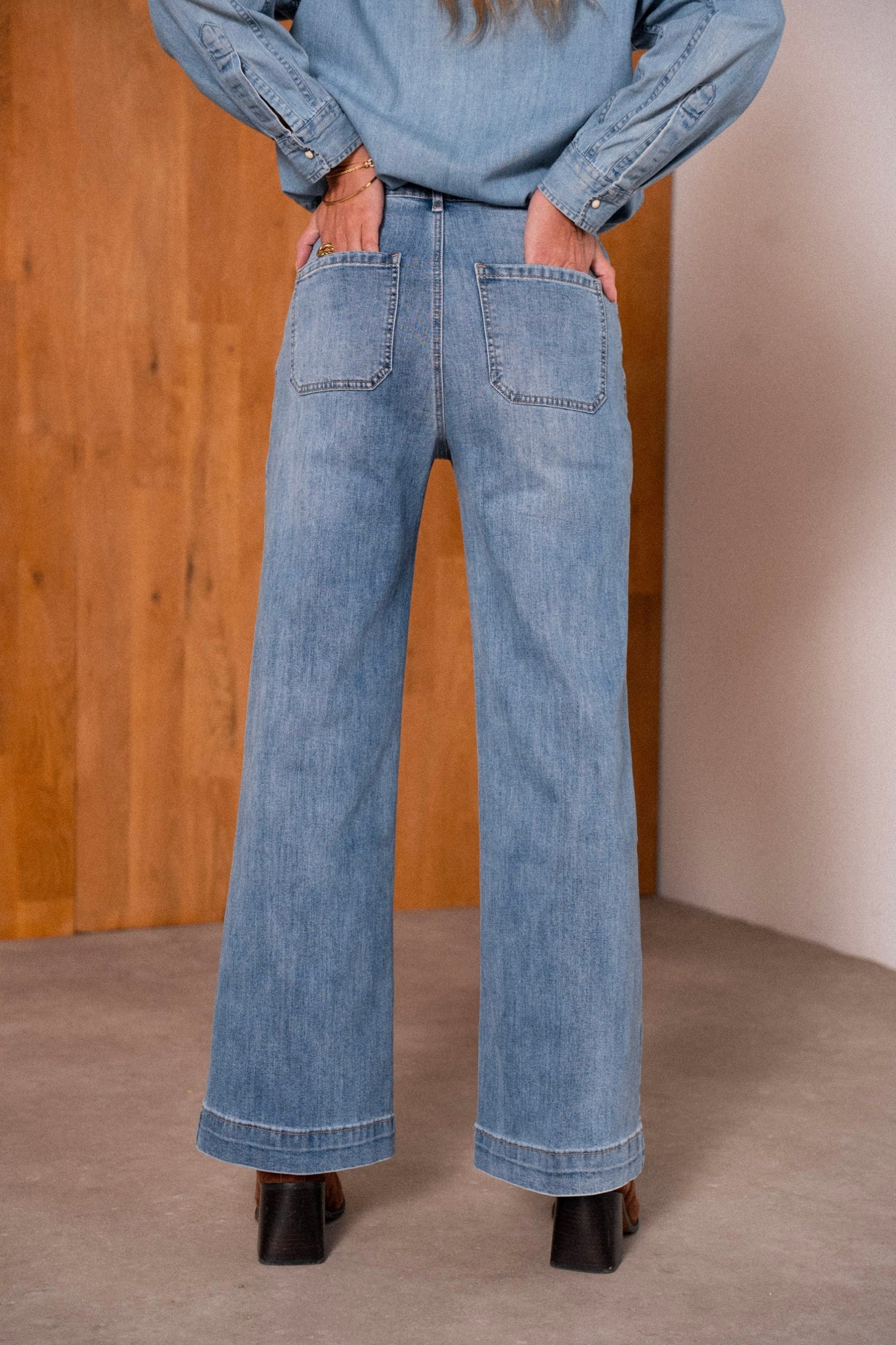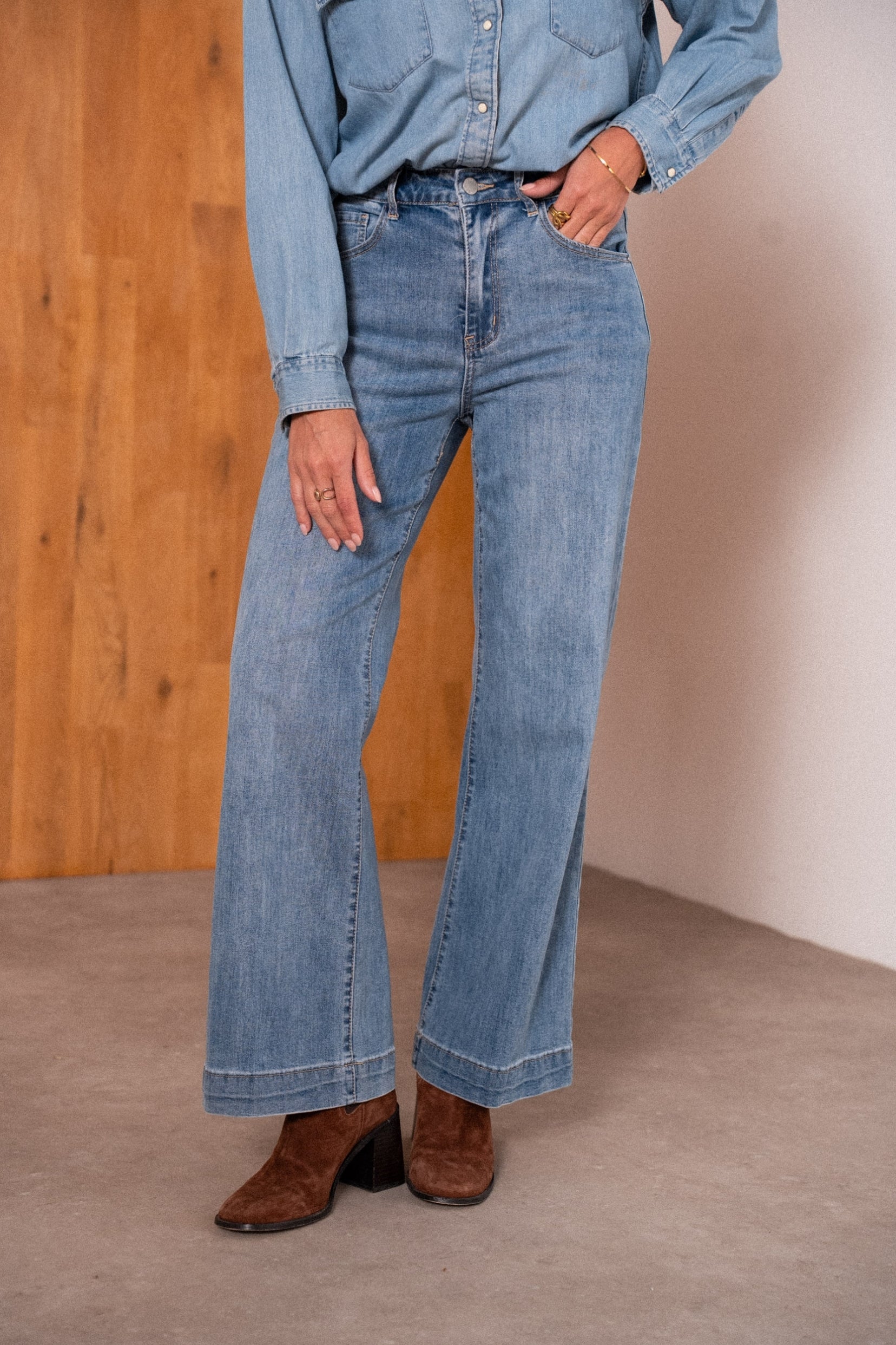 Coupe : Jean wide leg et flare à la fois, large et évasé, inspiré des coupes 70’s.