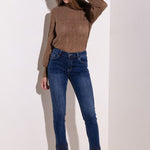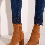 - Design: Verziert mit zarter englischer Stickerei, verziert mit kleinen Strasssteinen am unteren Ende der Hose. Dieses praktische Modell verfügt außerdem über 5 Taschen für ein ausgewogenes Verhältnis von Stil und Funktionalität.