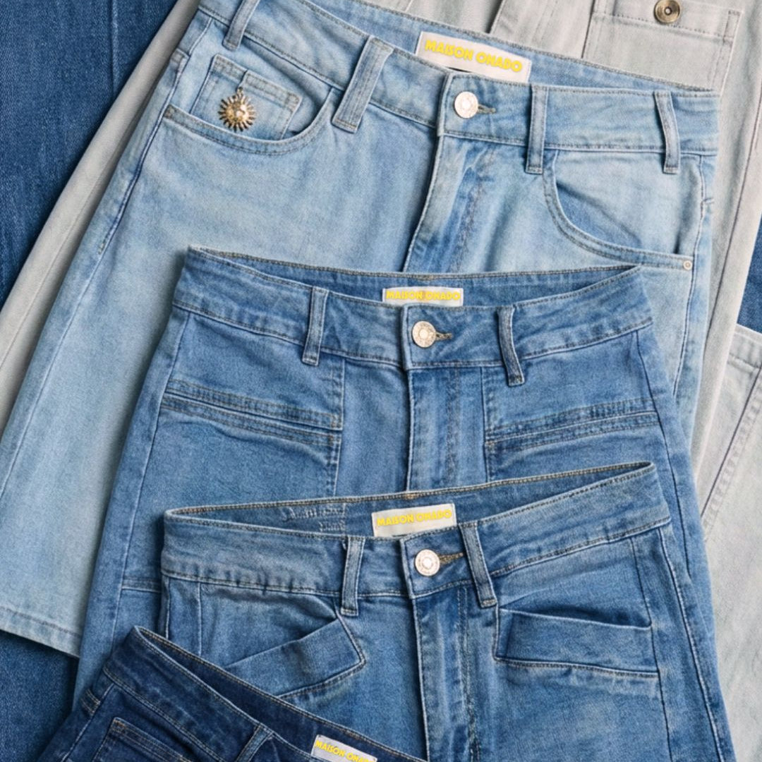 - Design: Hose mit 4 flachen silbernen Knöpfen, die den Bauch formen. Dieser zeitlose blaue Denim bietet eine stilvolle und vielseitige Silhouette.