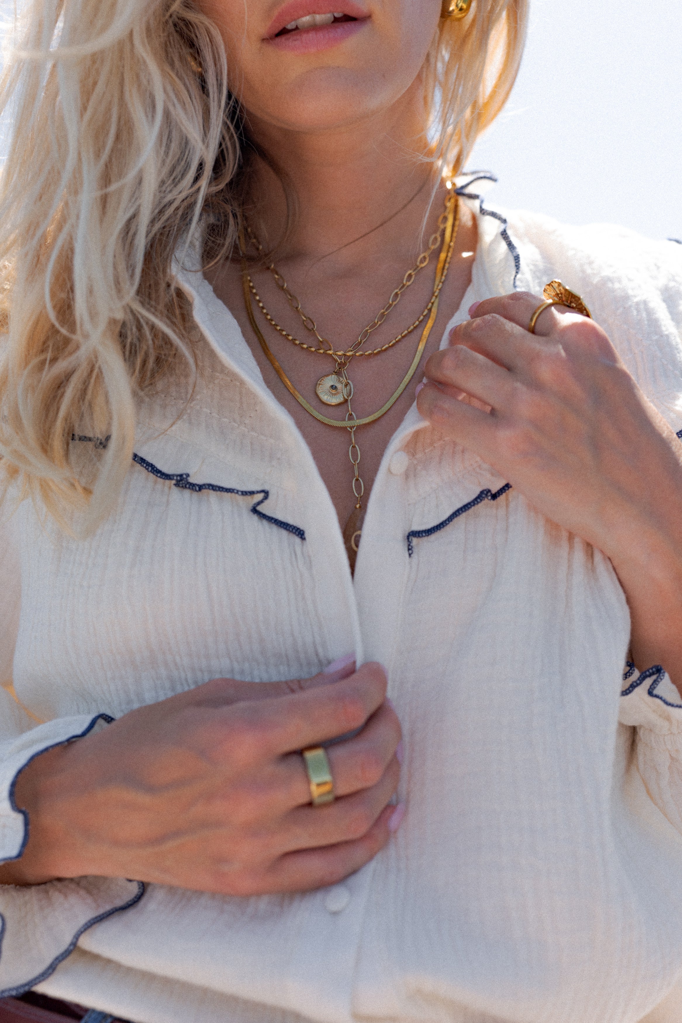 Un bijou mystique et lumineux à superposer ou porter seul.
