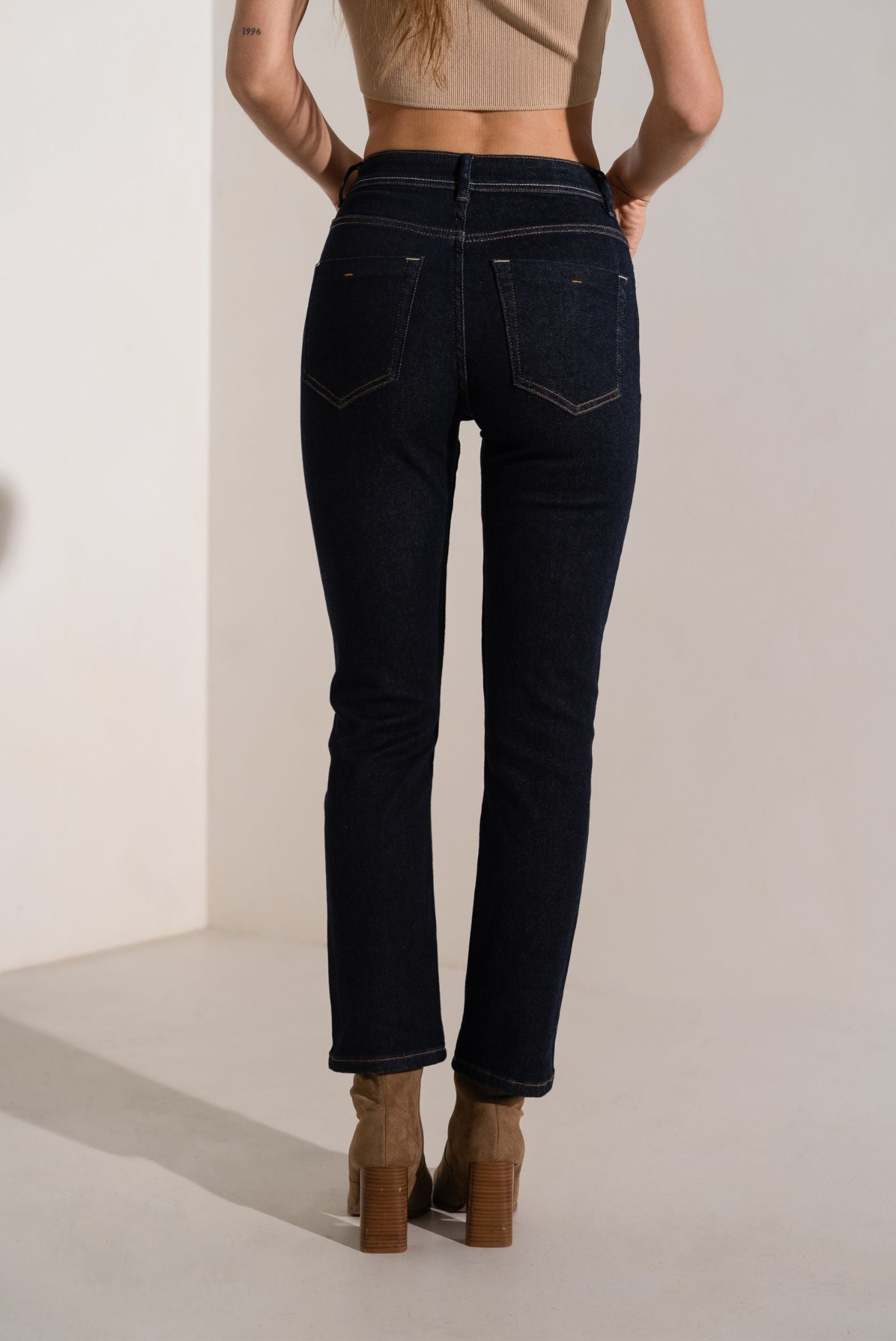 • Design: Raw denim pants, a timeless one with a straight cut. A subtle touch of sophistication is added by the camel and beige embroidery topstitching detail on the 5th pocket.