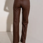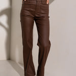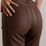 - Design: Chocolate-colored coated pants with fleece interior. Wide coated straight cut, ultra comfortable and cocooning thanks to its fleece-lined interior. A set of patch pockets at the front echo the widened lower legs
