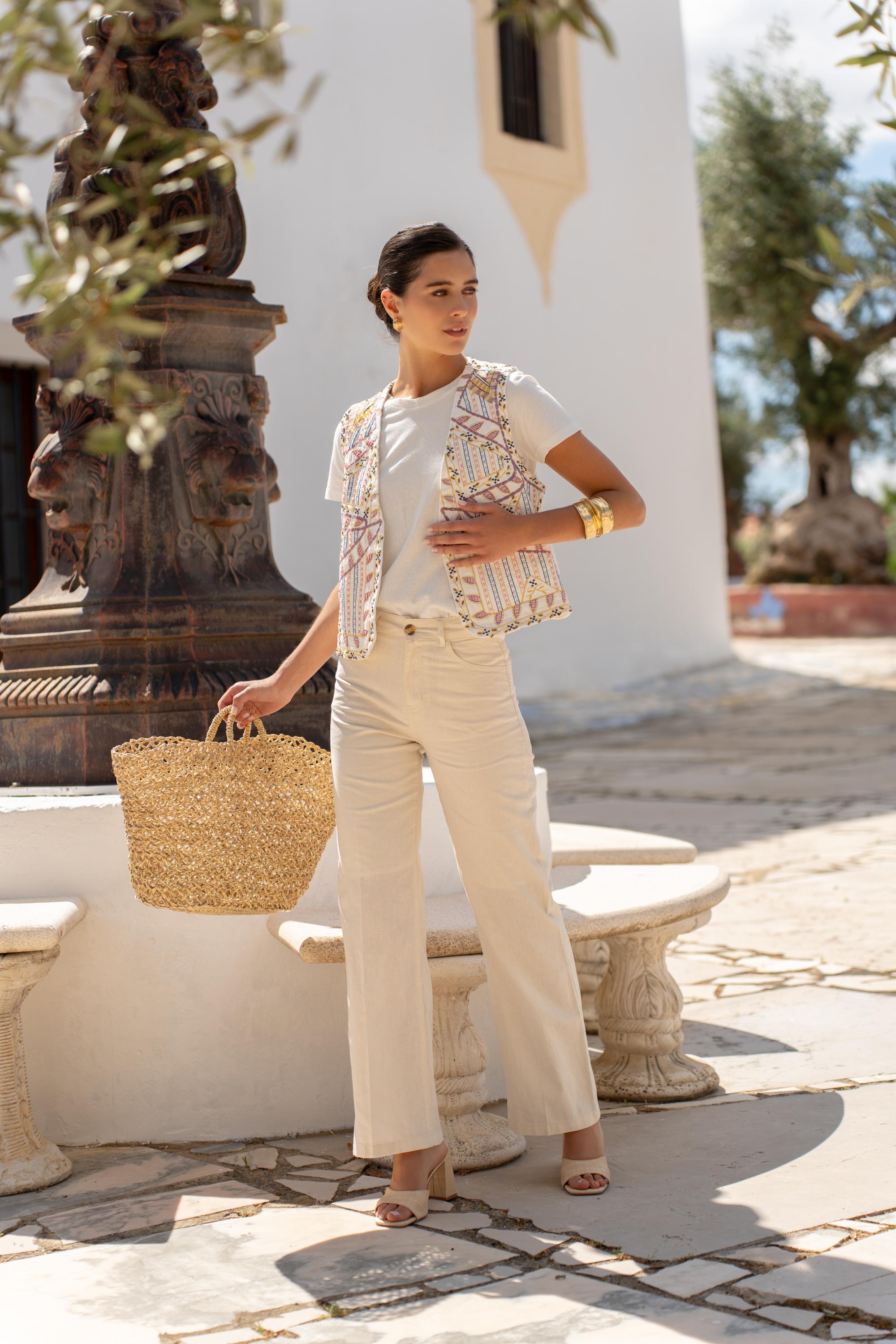 Linen and cotton pants, made from 100% natural fibers, with a wide straight cut. It is equipped with a zip and button closure, as well as front and back pockets for a practical touch. A chic cut combined with natural materials.