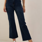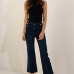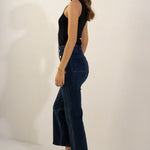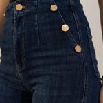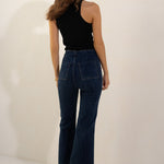 - Design: Flared pants at the bottom. Flat gold side buttons. Topstitched front and back darts which give a flat effect at the stomach level.