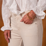 Vibe : Infiniment confortable grâce à son denim en coton stretch. Son évasé subtil et sa longueur 7/8ᵉ font tout le caractère de ce jean.
