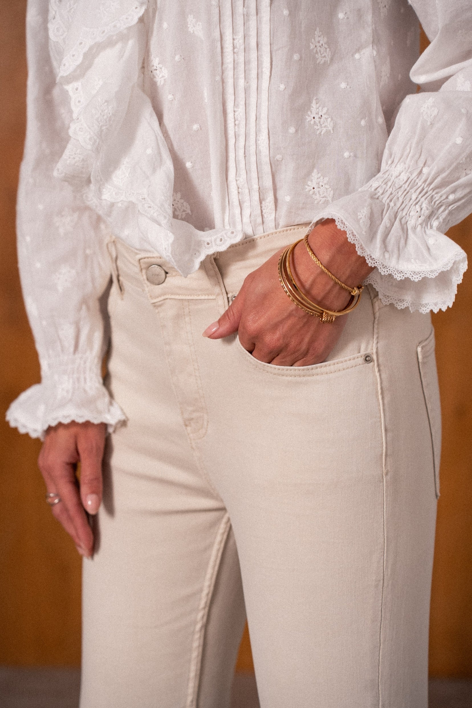 Détails : Sa coupe 7/8ᵉ met joliment les chevilles en valeur. Les finitions frangées en bas de jambe apportent une touche moderne et décontractée.