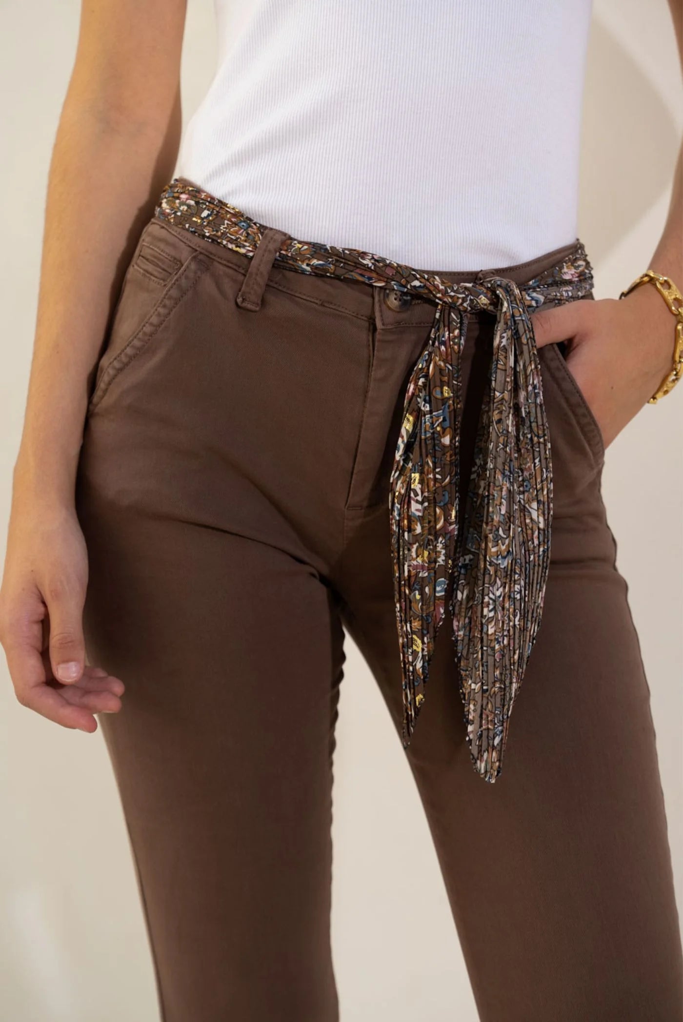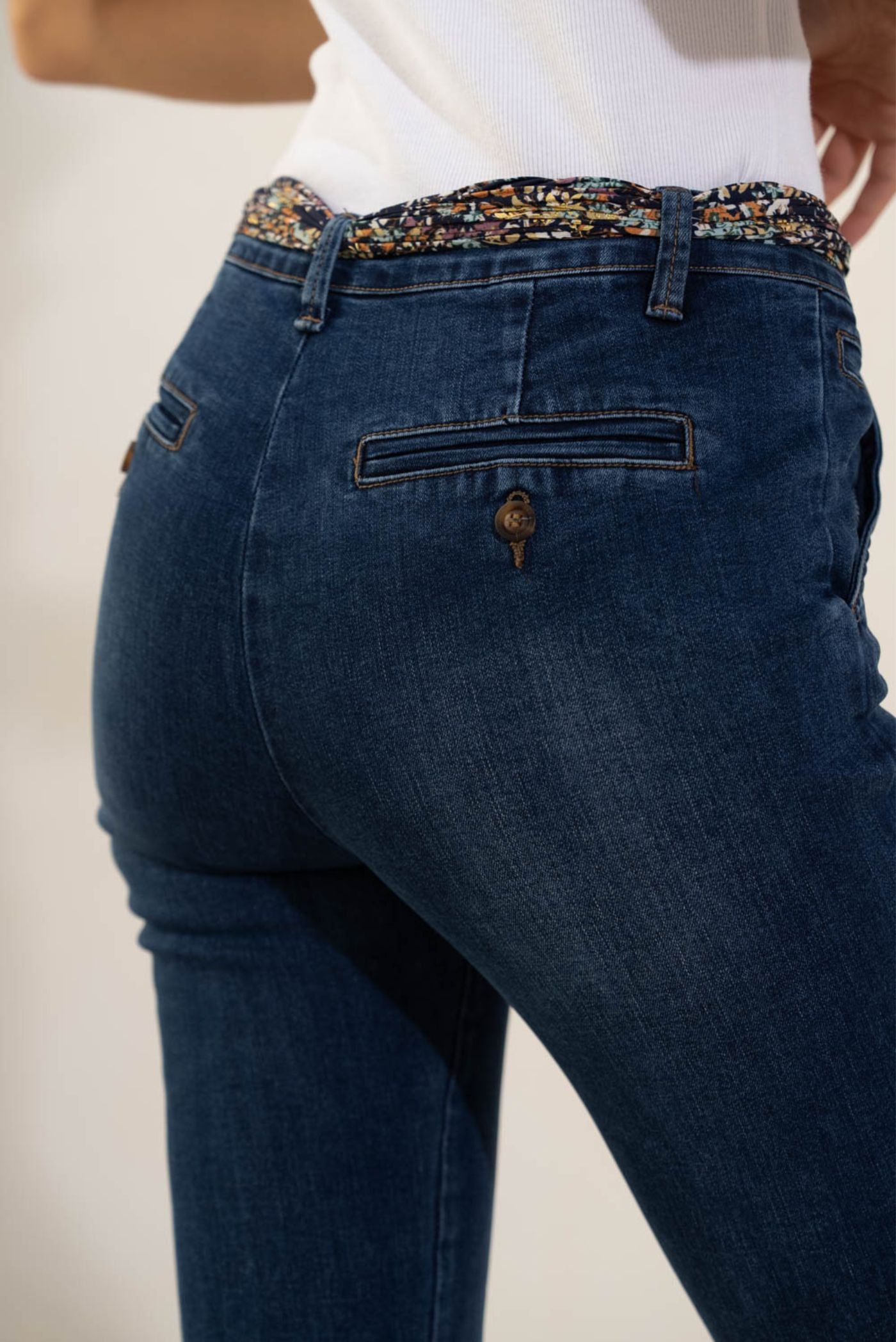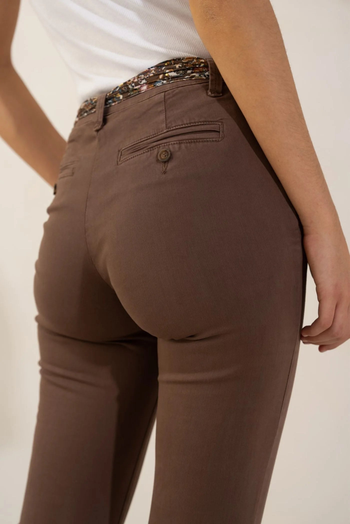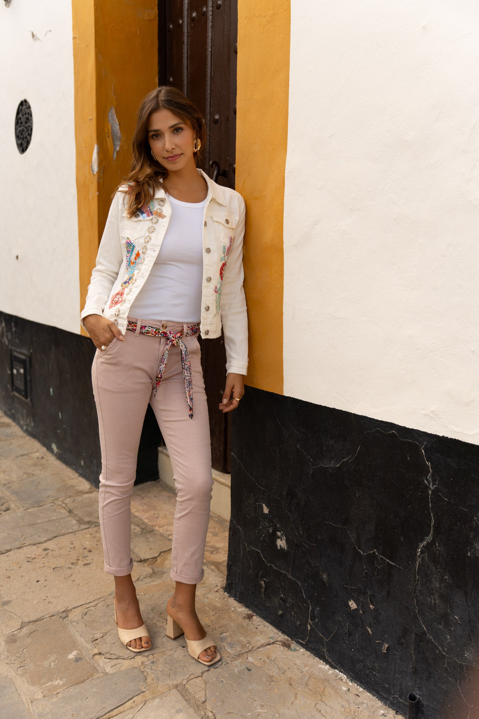 - Diseño: Pantalón chino denim con bolsillos italianos en la parte delantera. Detalles de bolsillo trasero ribeteado. Con botones de madera.
