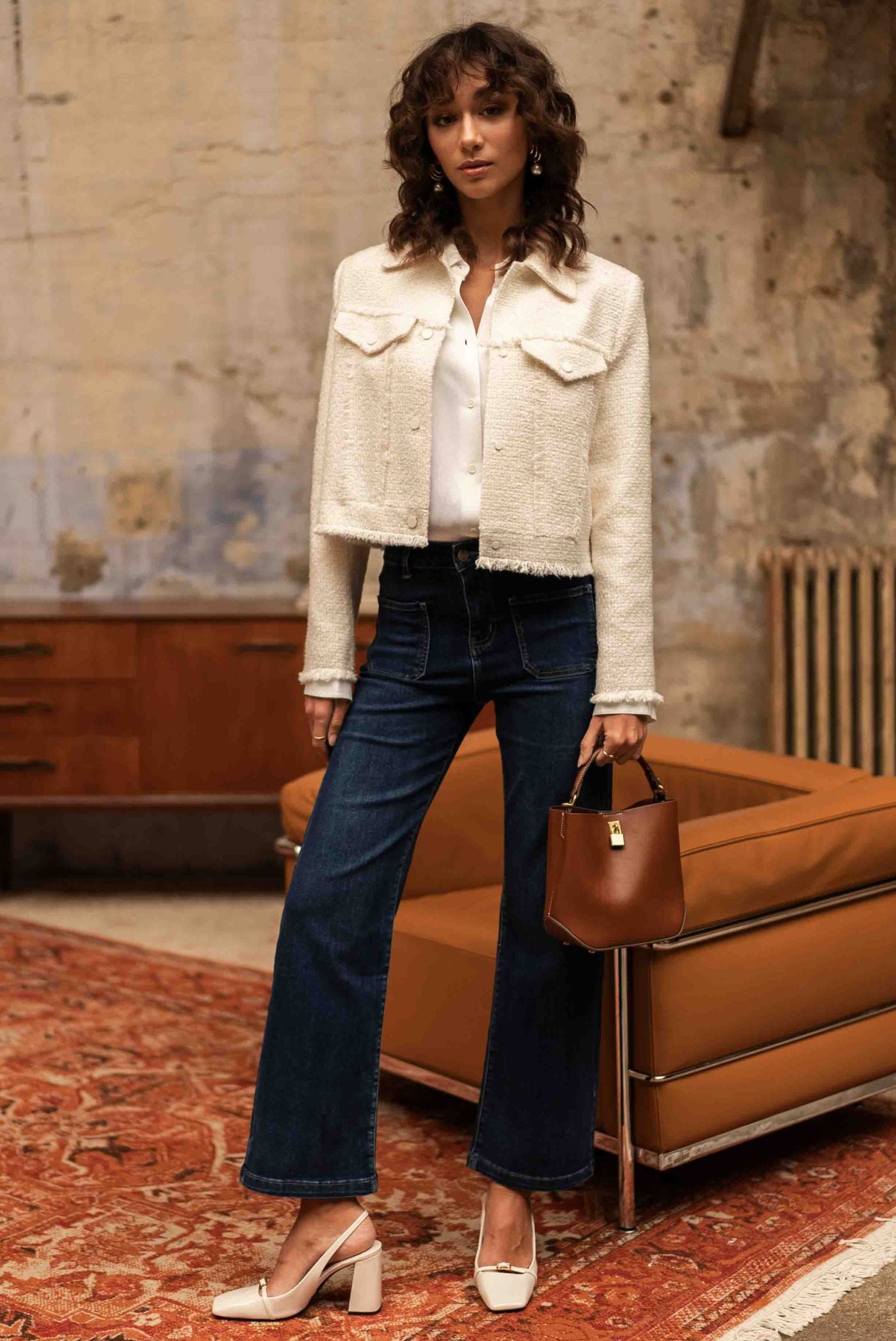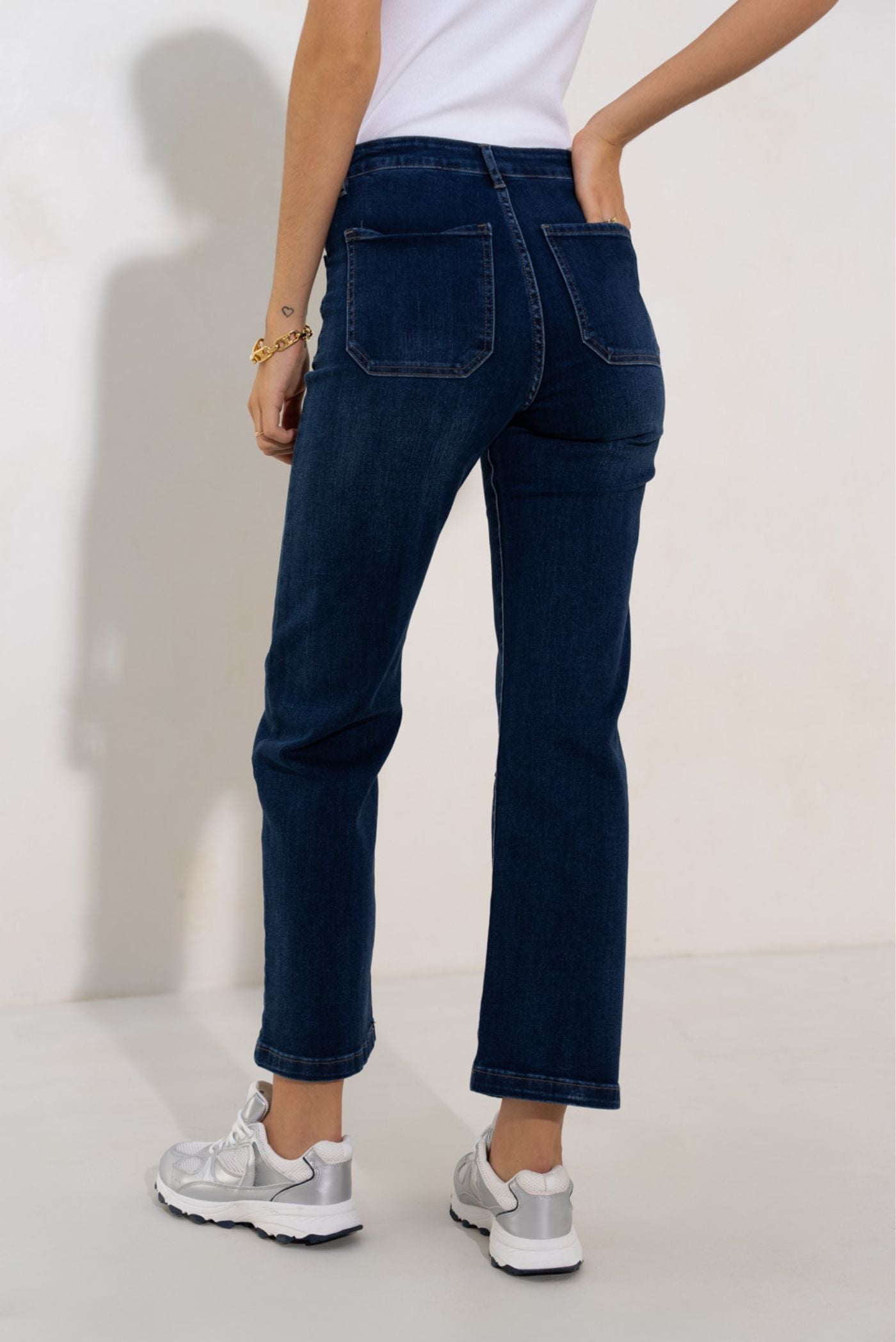 Nuestros vaqueros Carla favoritos, con sus dos bolsillos bien colocados, alargan la silueta a la perfección, creando un look elegante y con vuelo.