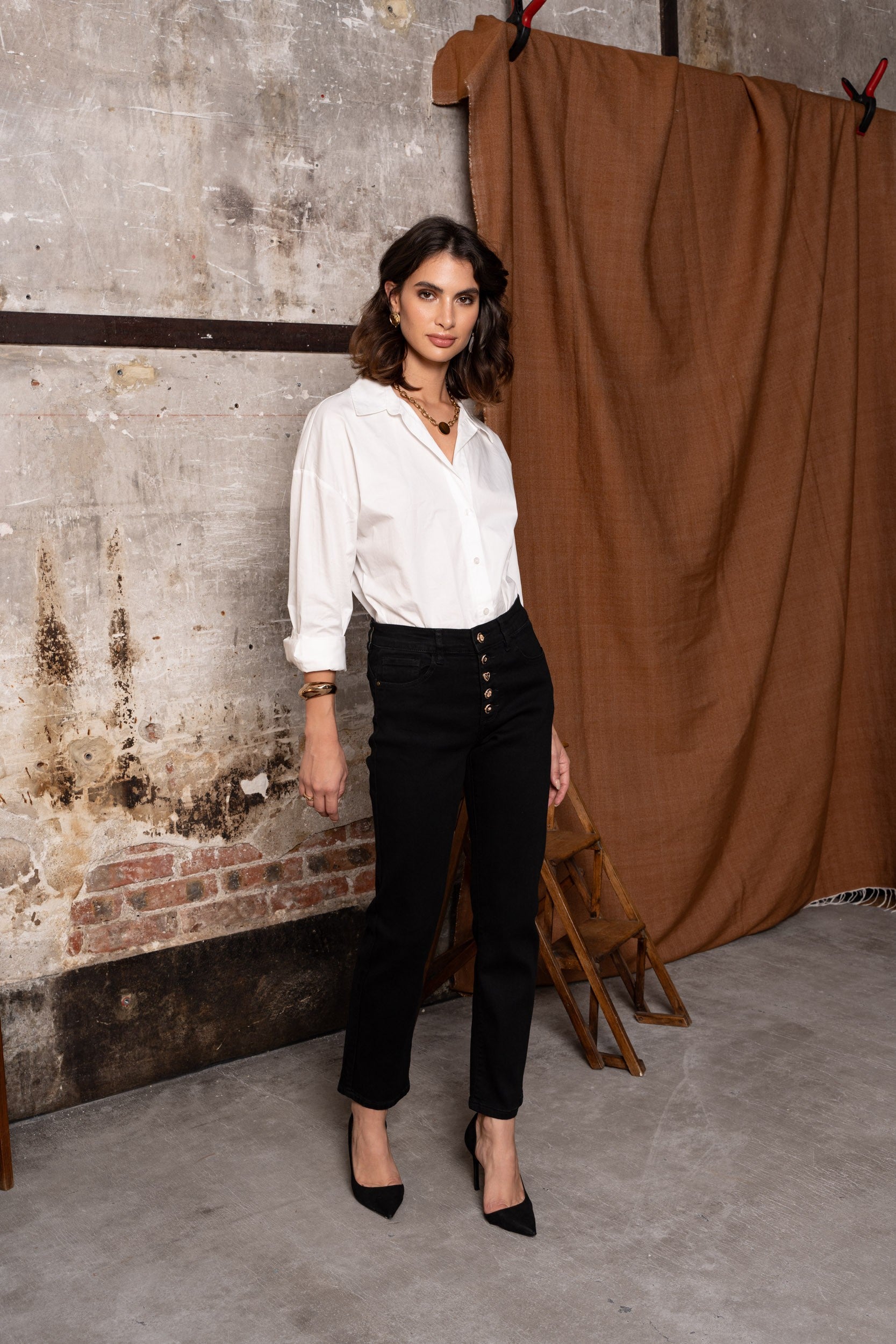 - Composición : 85% algodón 13% poliéster 2% elastano