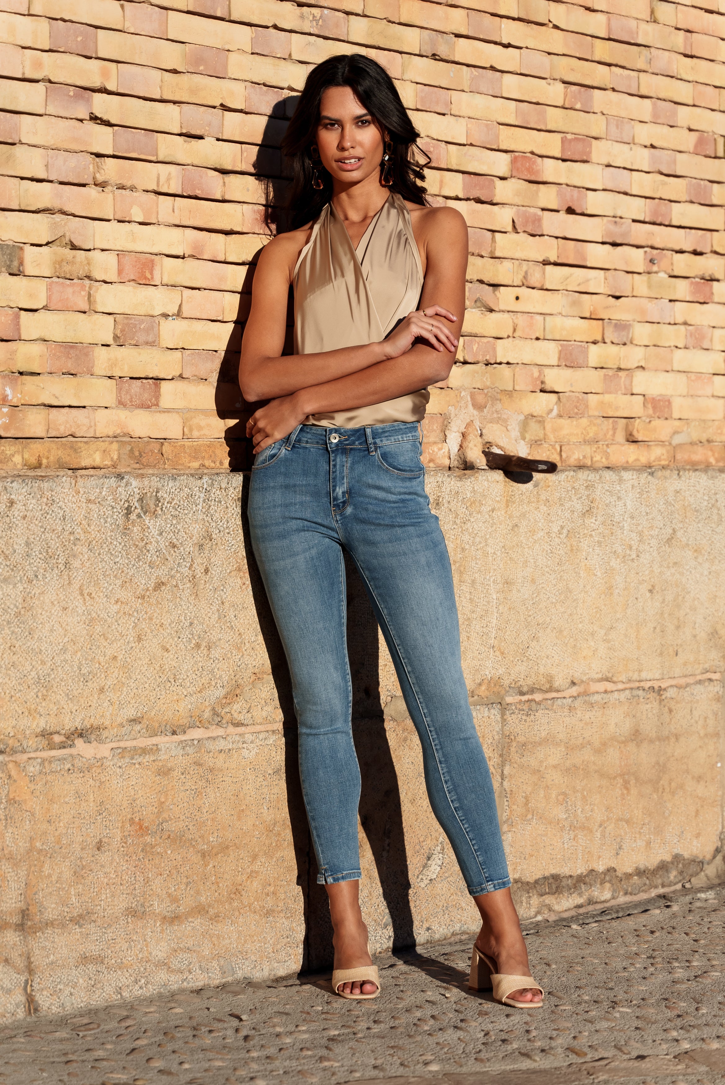 Vaqueros PUSH-UP en denim azul: equilibrio perfecto entre comodidad y estilo. Su corte de largo 7/8 realza tu silueta, aportando un toque de modernidad a tu look. Lo imprescindible para estar a la última moda y estar cómodo durante todo el día.