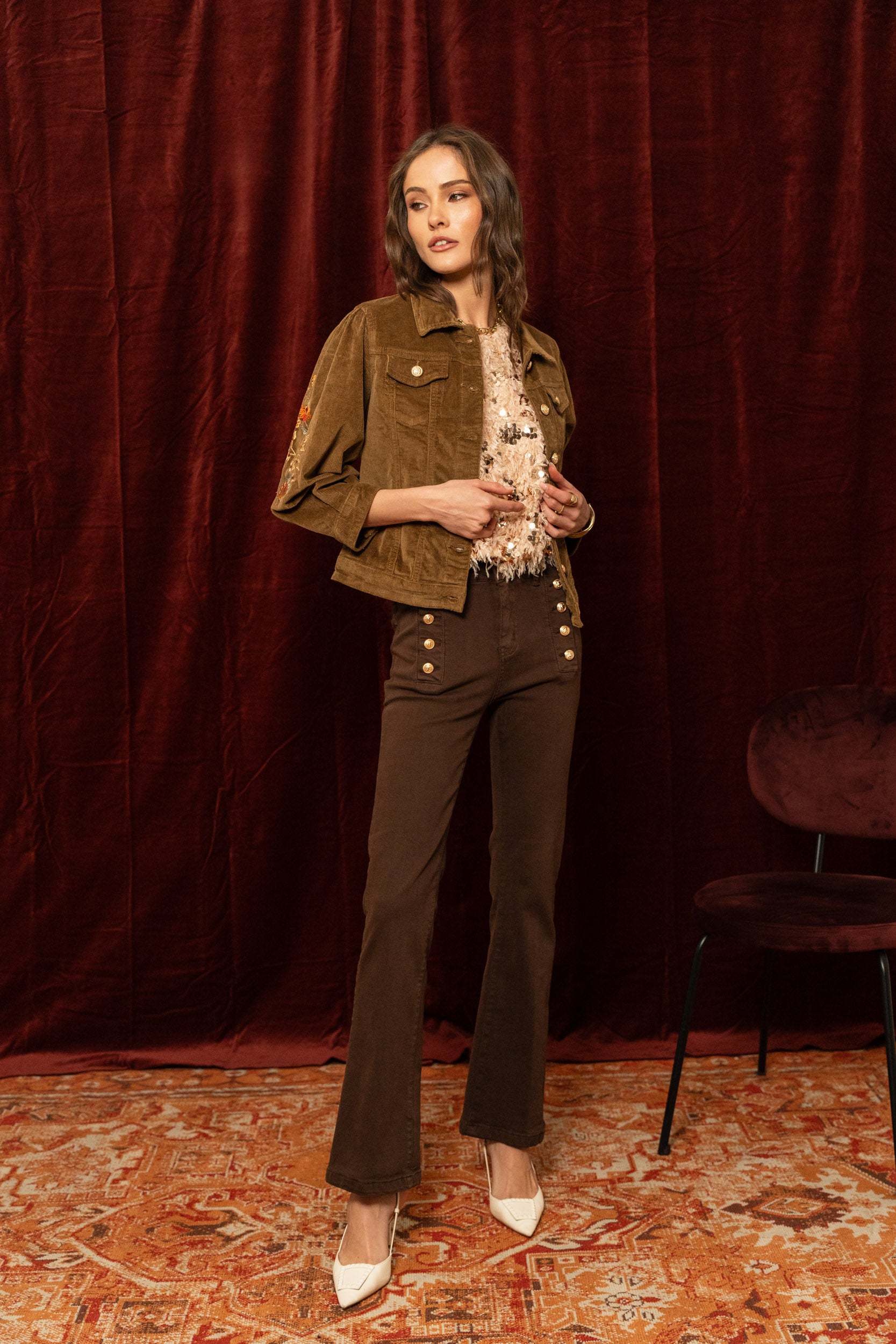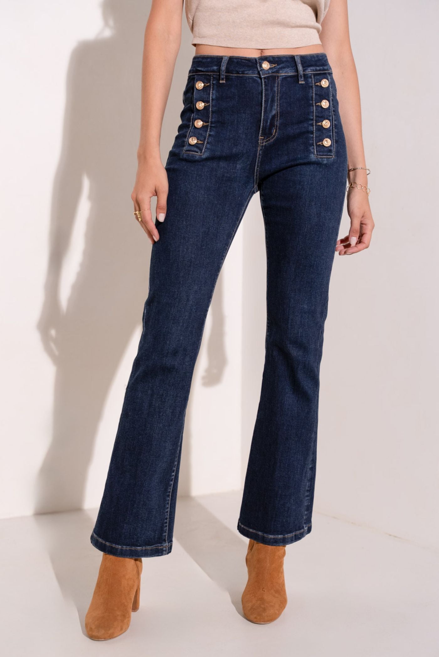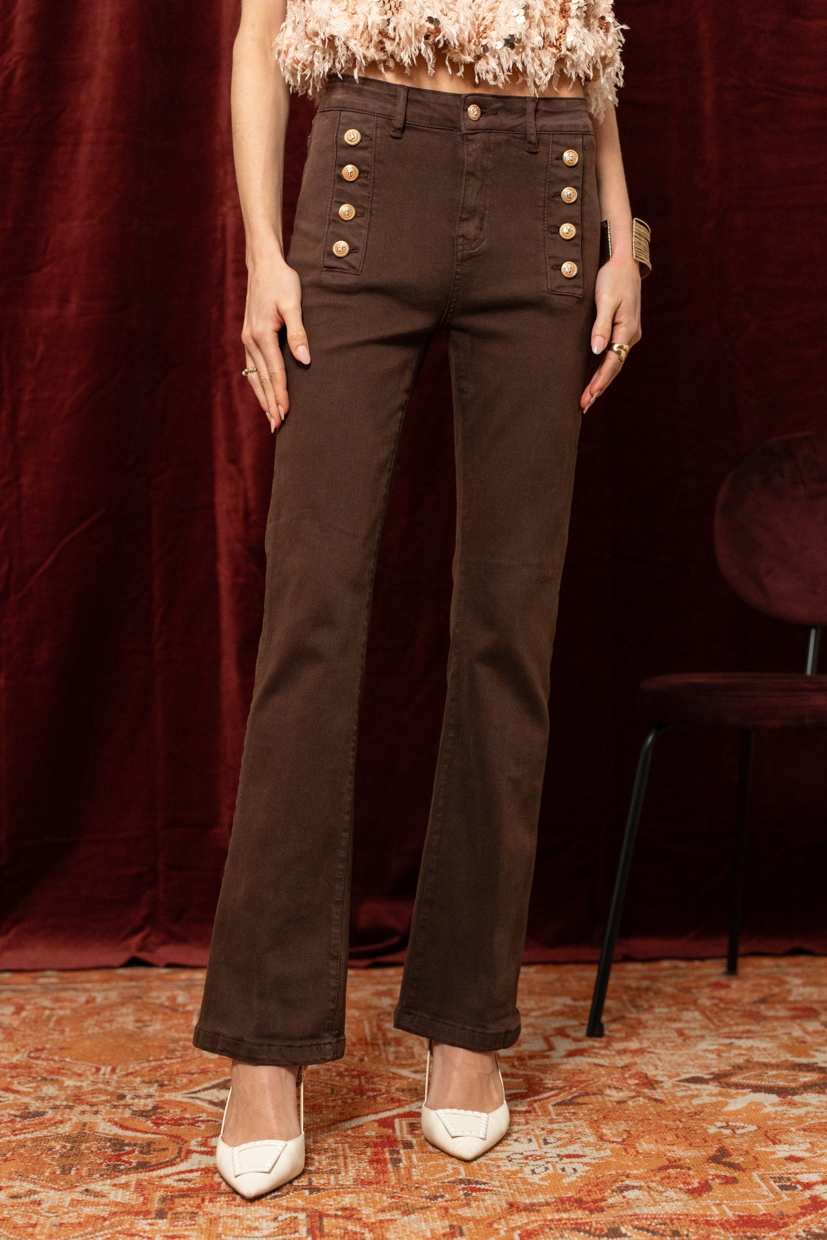 Diseño: Acentuados con botones dorados estilo Napoleón, una elección elegante e inteligente, estos pantalones combinan un corte favorecedor que se ensancha ligeramente en la parte inferior con detalles elegantes.