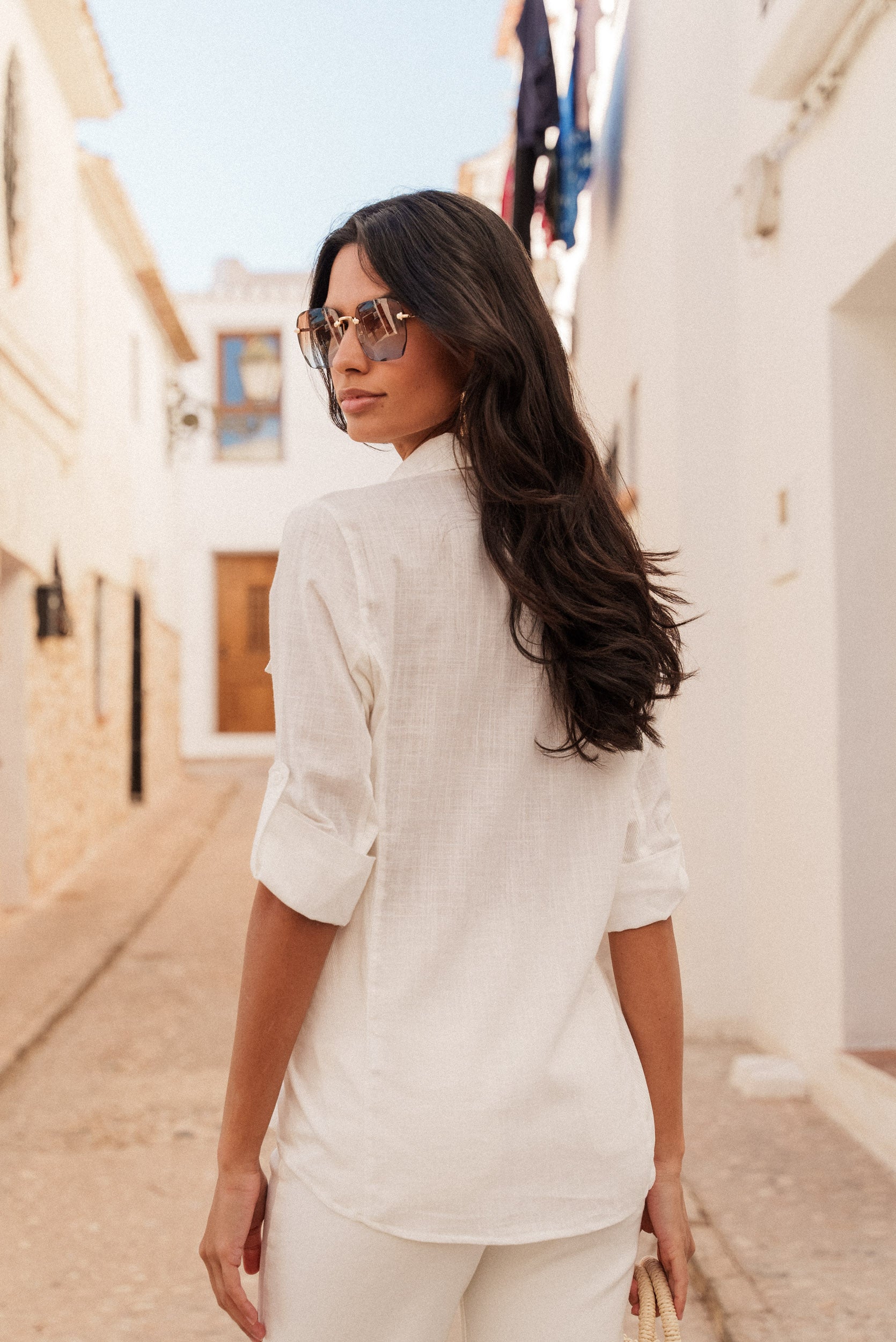 Los vaqueros Soliana crudo tienen un look relajado y chic con sus dos bolsillos delanteros decorados con botones dorados. El bolsillo decorativo, sin añadir volumen al look, ofrece un toque de sofisticación. El acabado del dobladillo con flecos añade un toque informal y moderno a esta prenda versátil. Un equilibrio perfecto entre elegancia y comodidad para un estilo casual refinado.