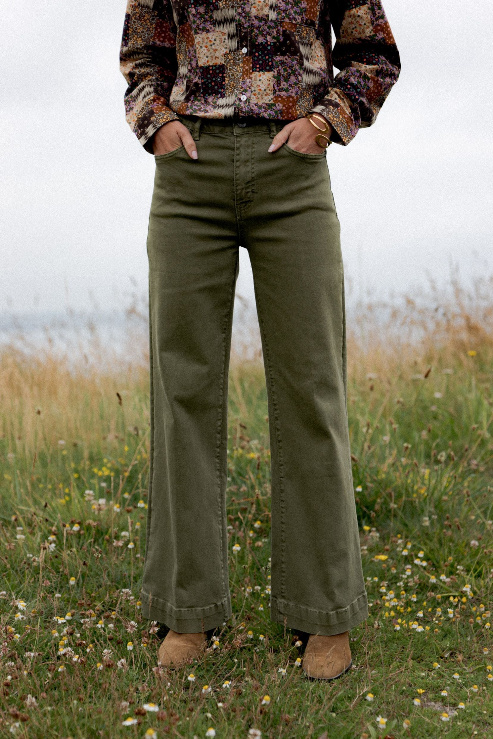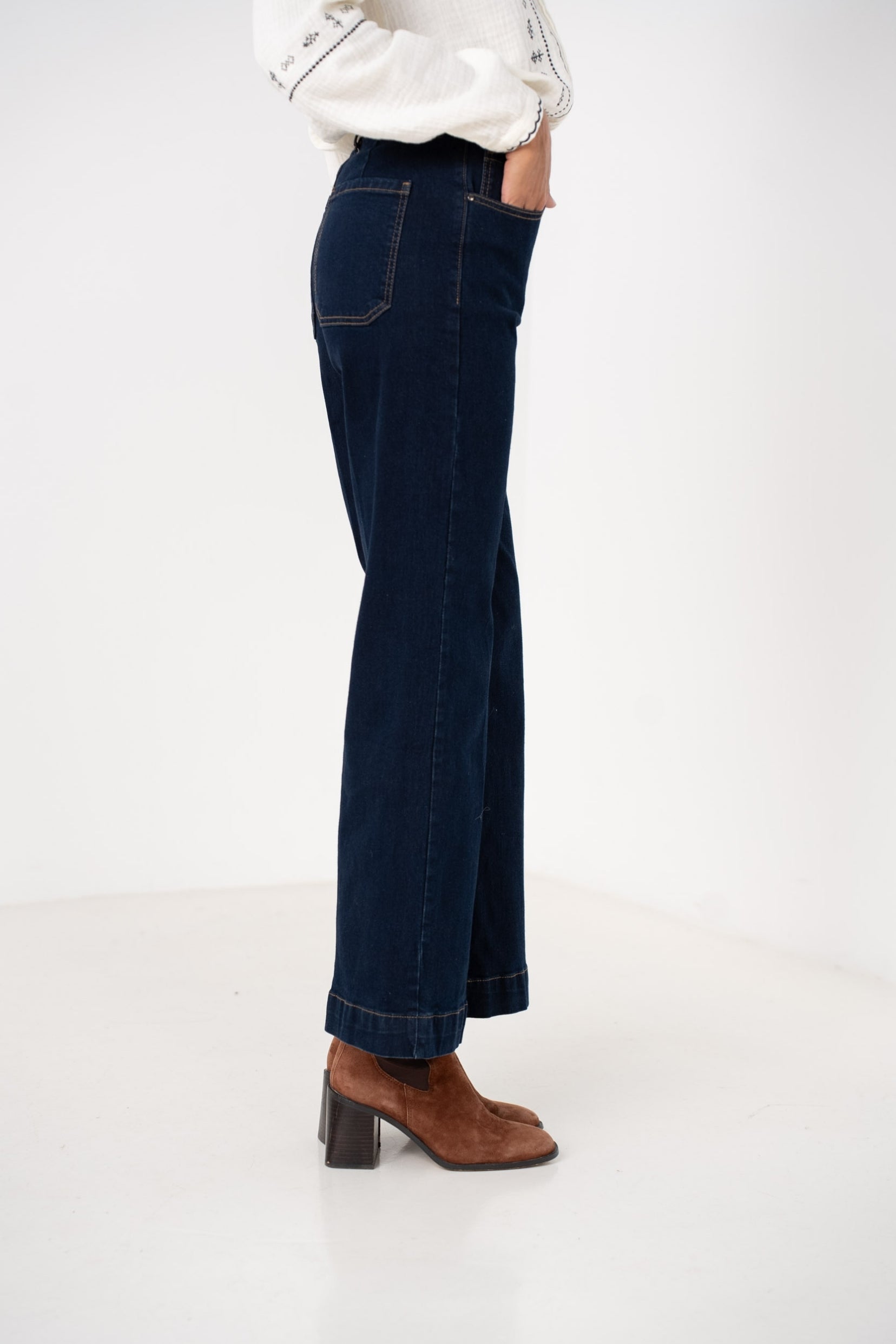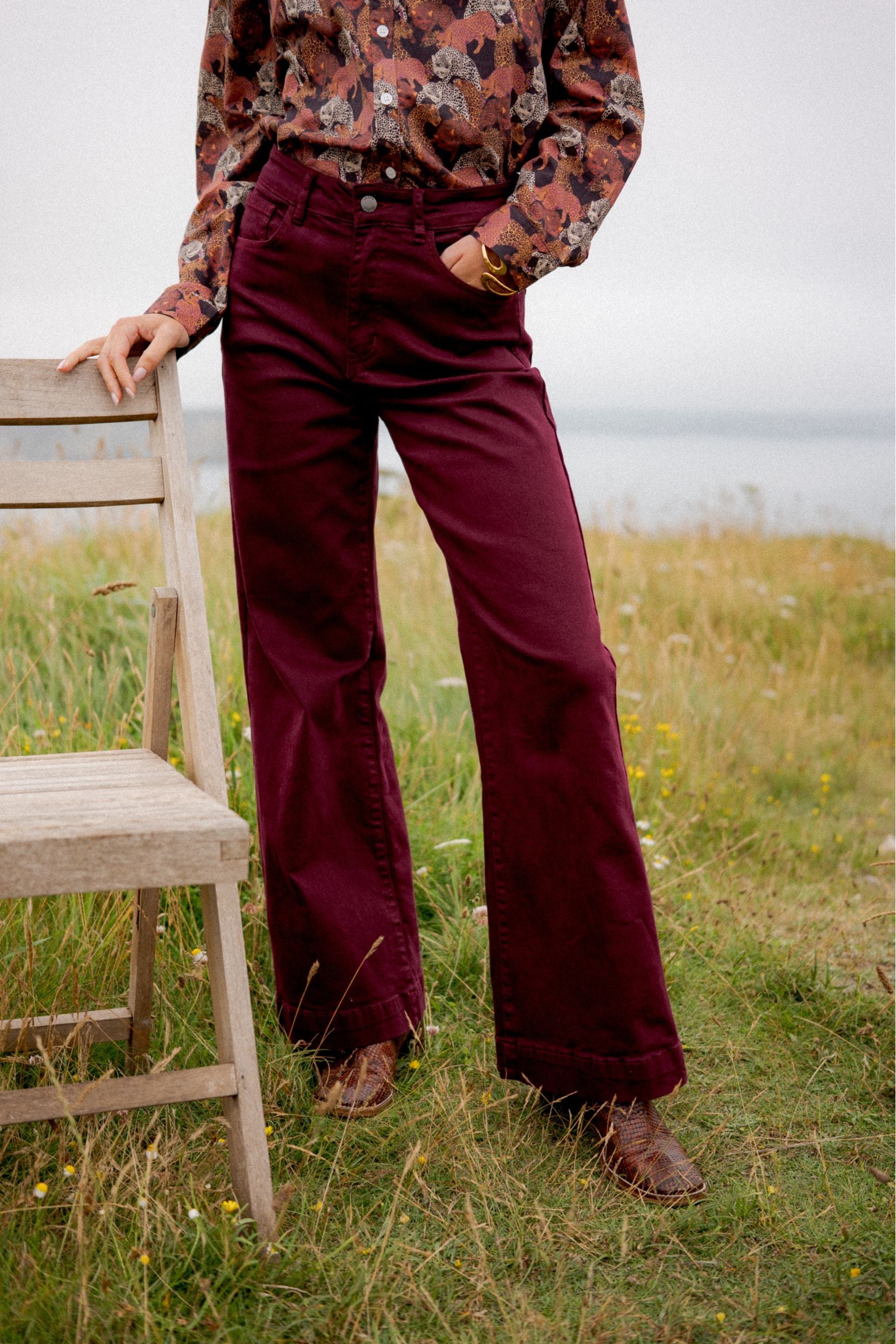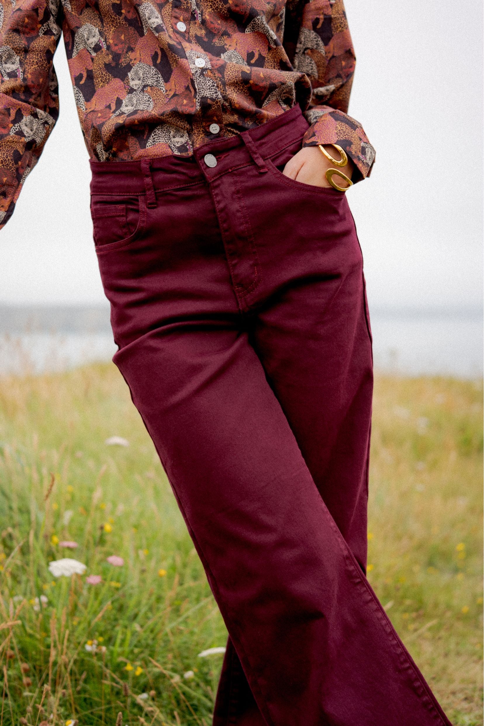 Taille haute, jambe large et fluide pour une allure structurée mais décontractée.