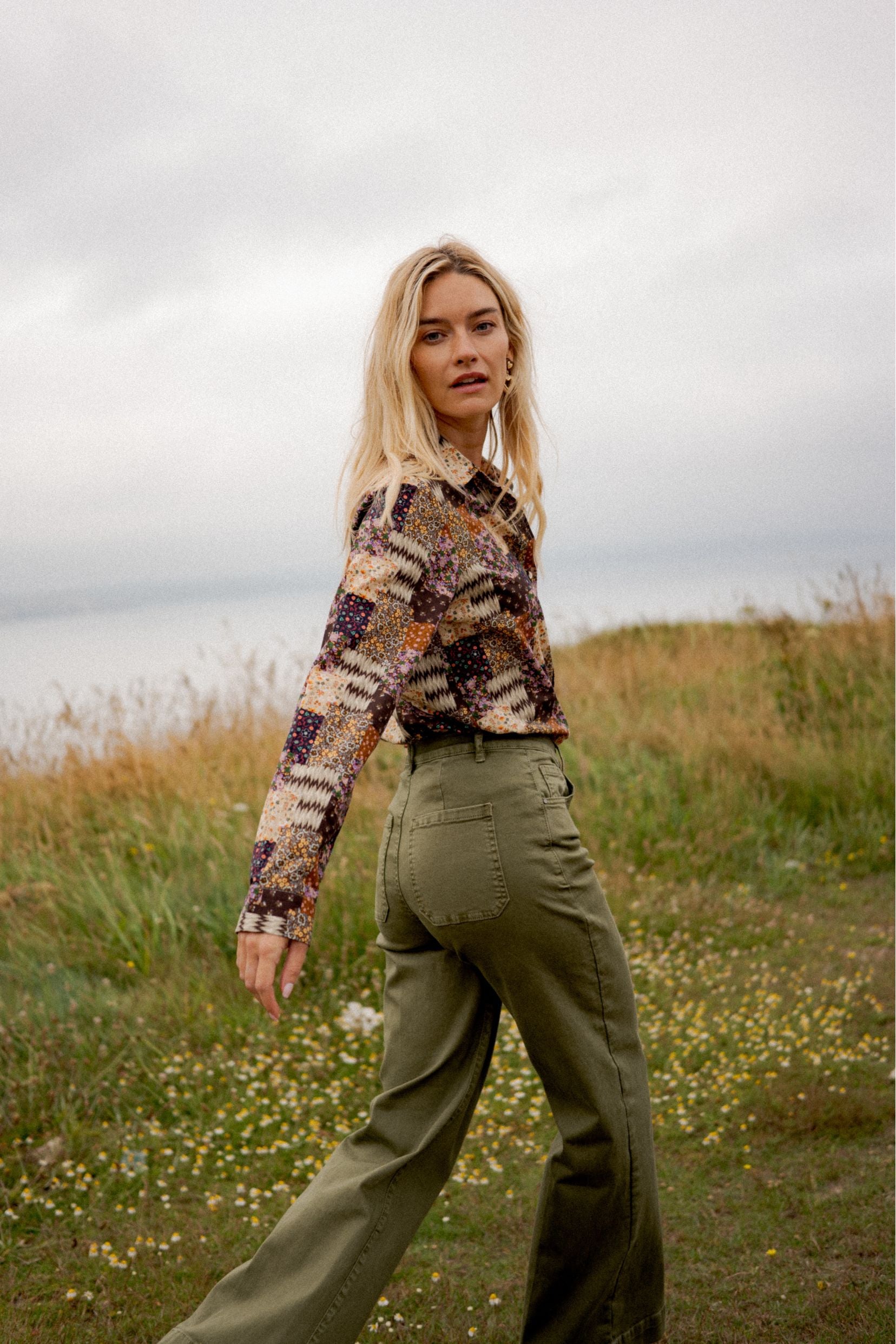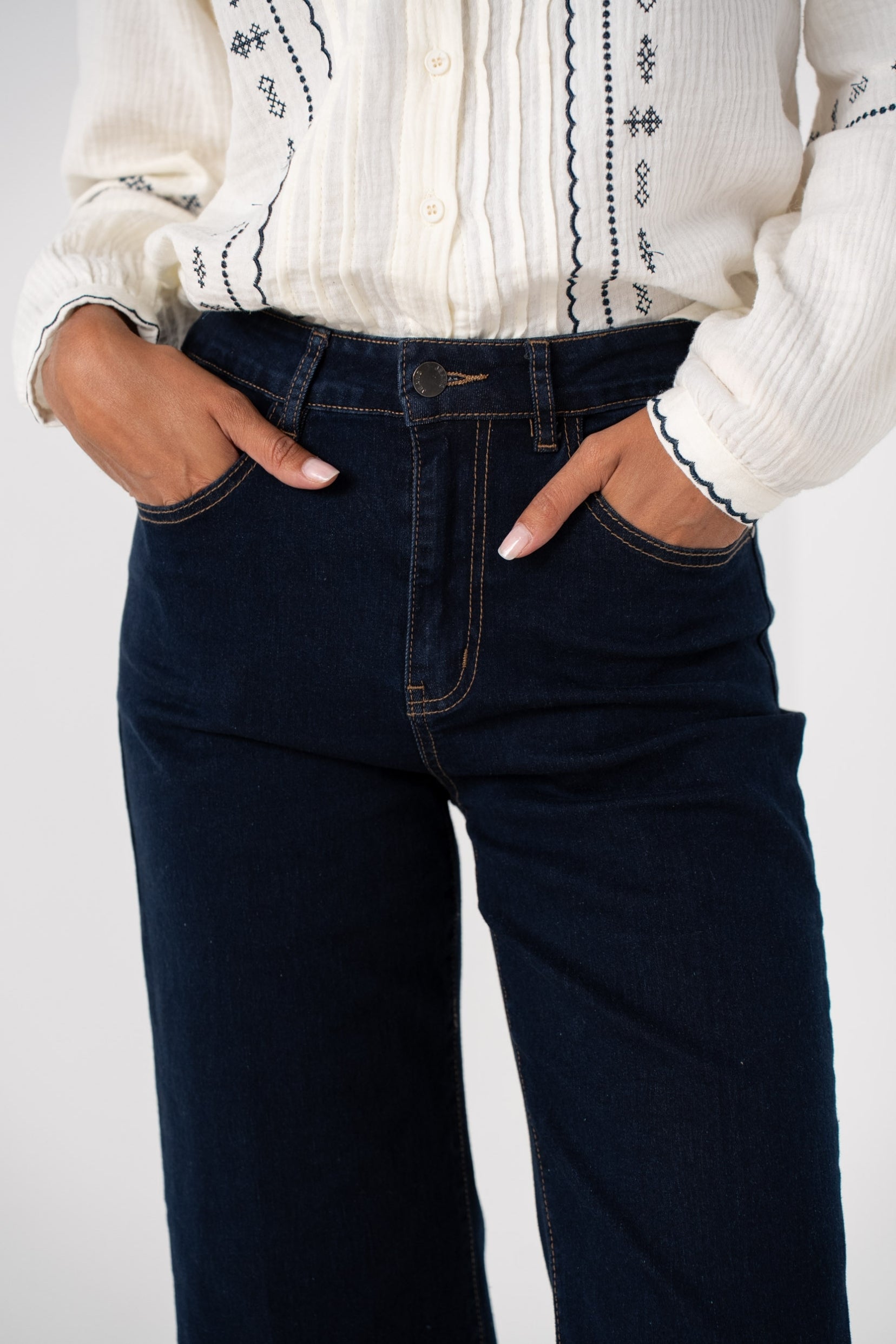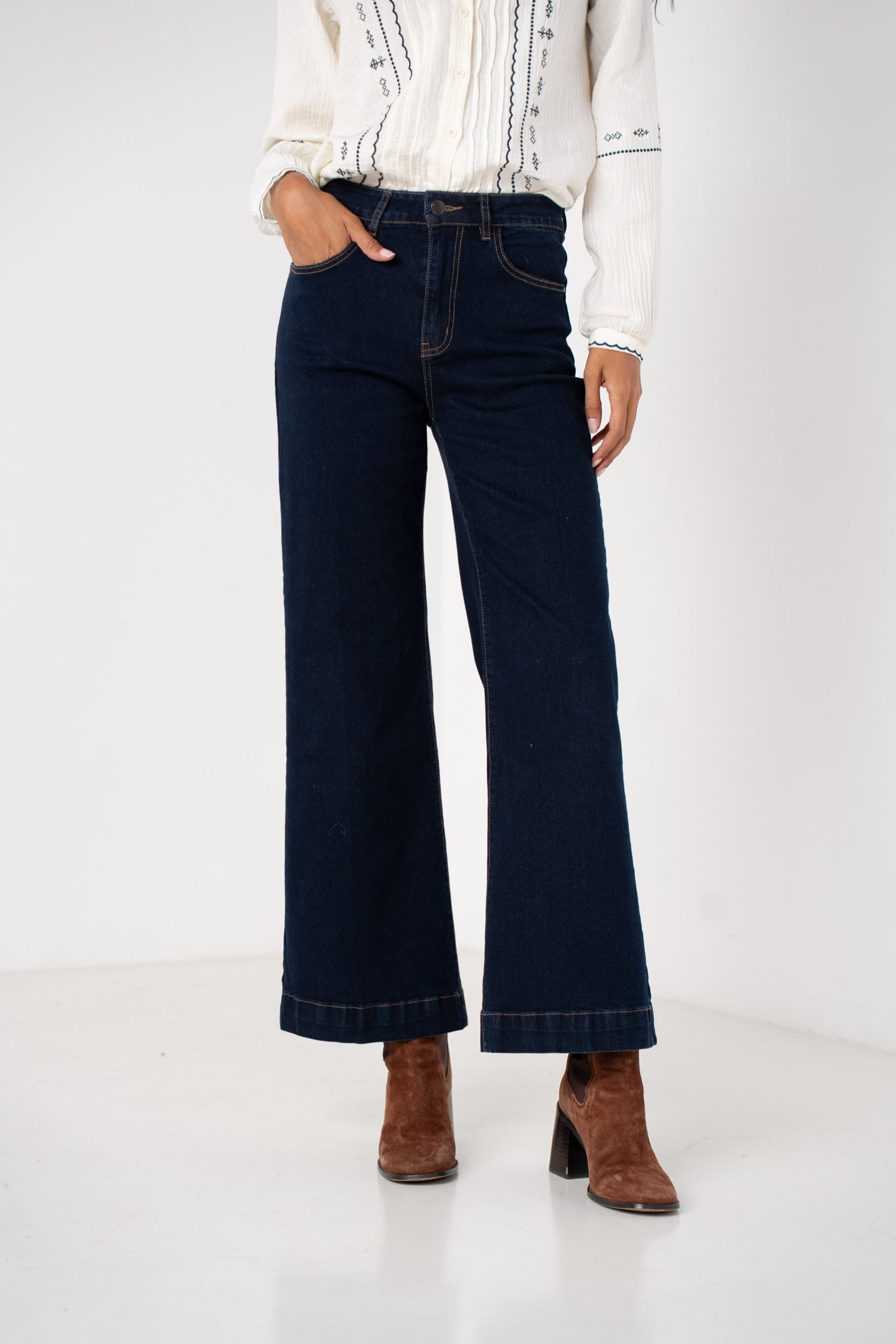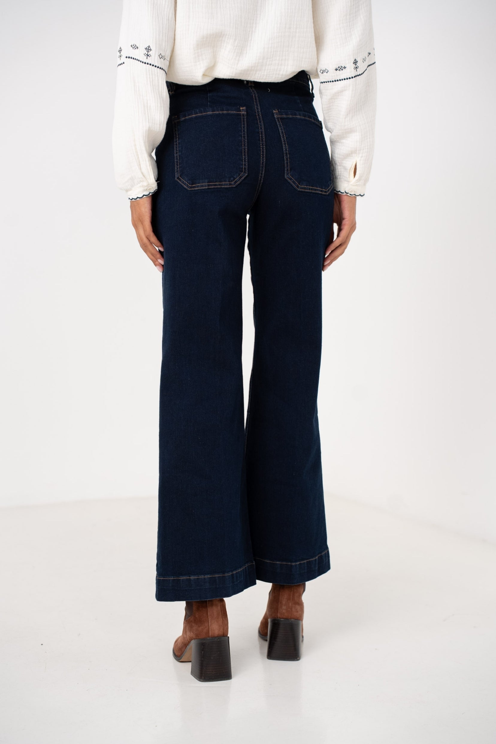 Taille haute, jambe large et fluide pour une allure structurée mais décontractée.
