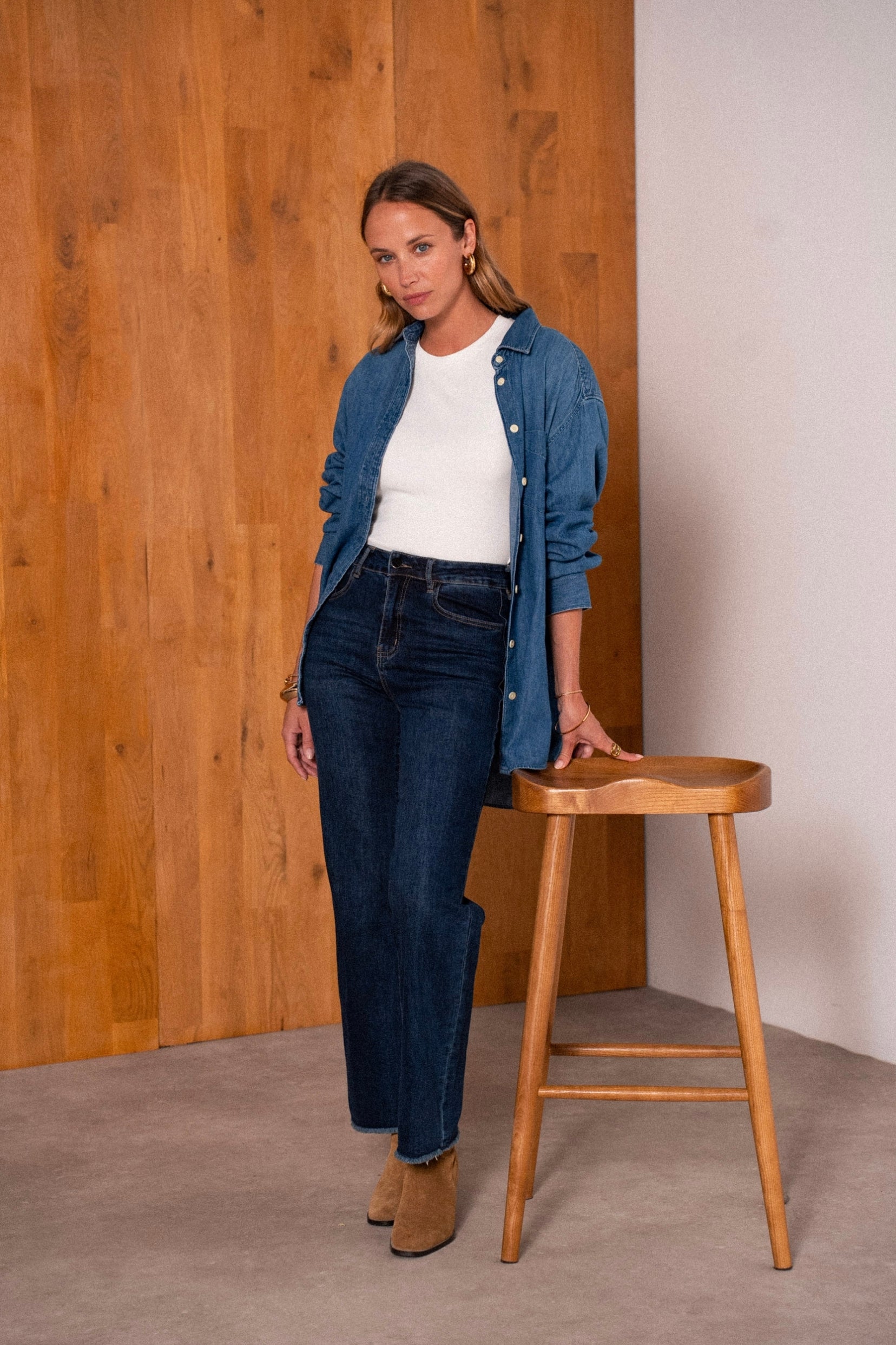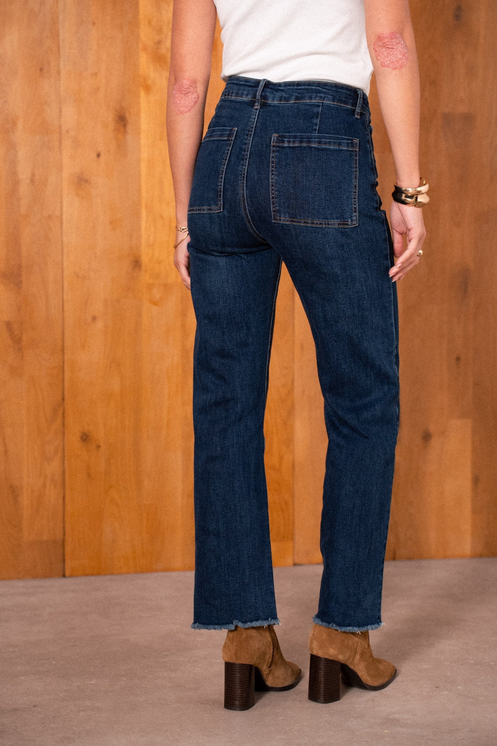 Vibe : Infiniment confortable grâce à son denim en coton stretch. Les finitions frangées discrètes apportent un twist subtil et moderne à ce classique du vestiaire.