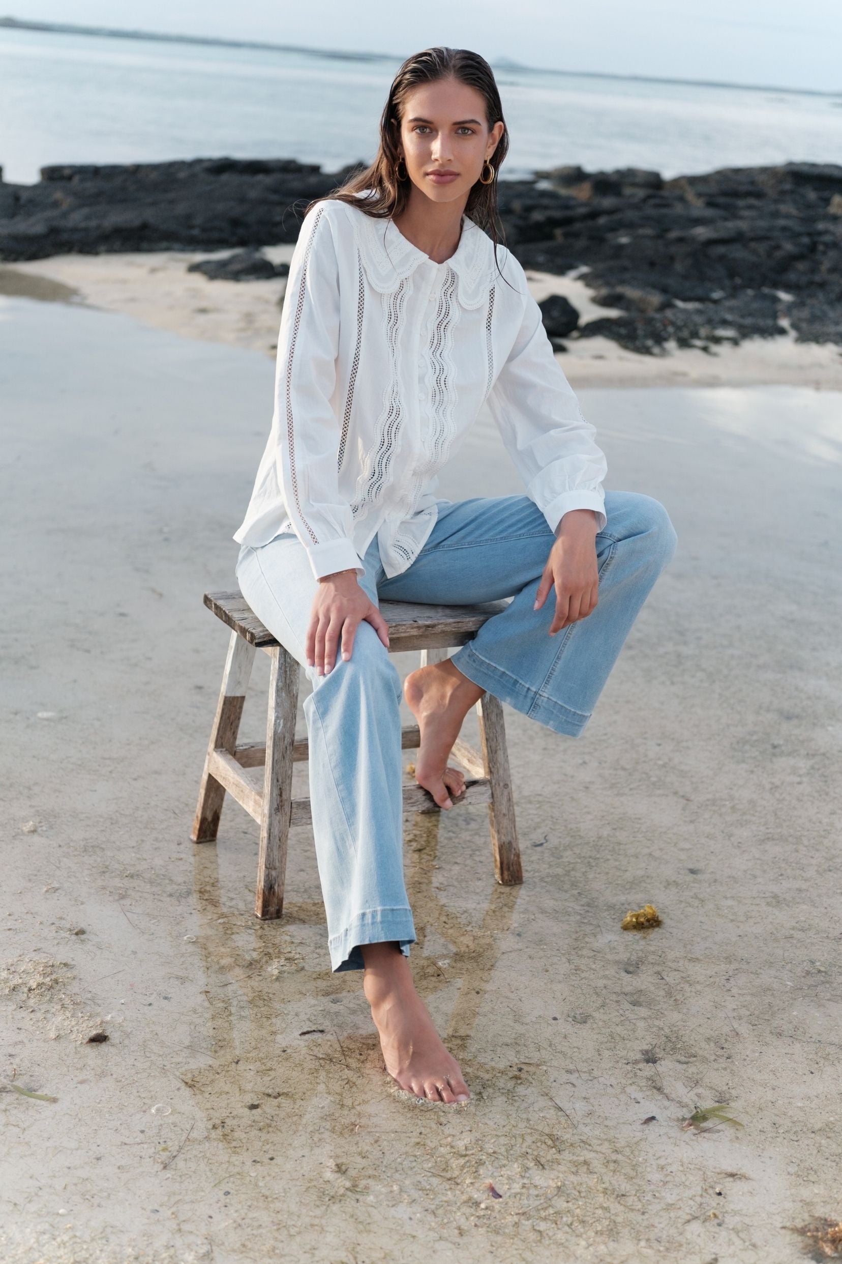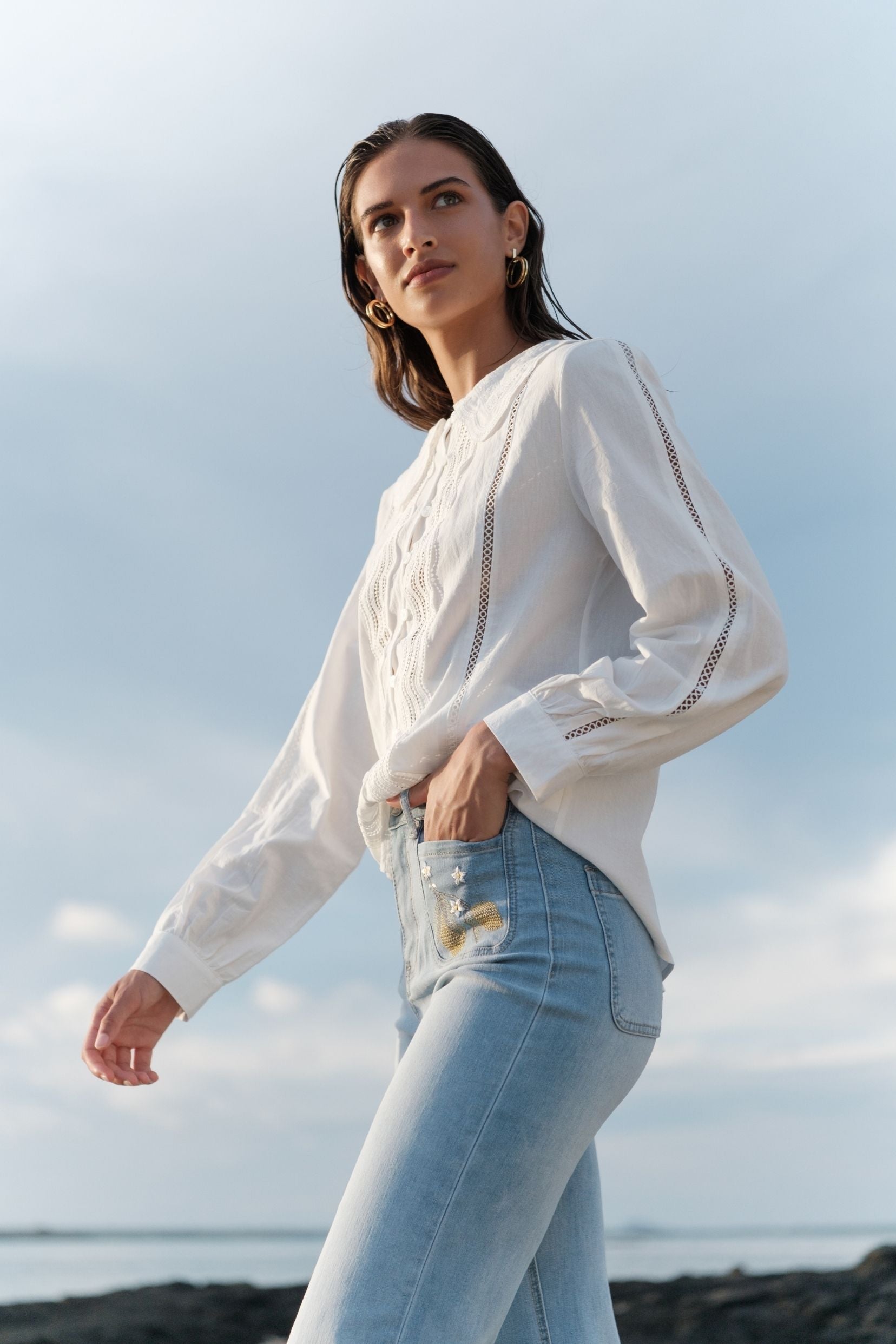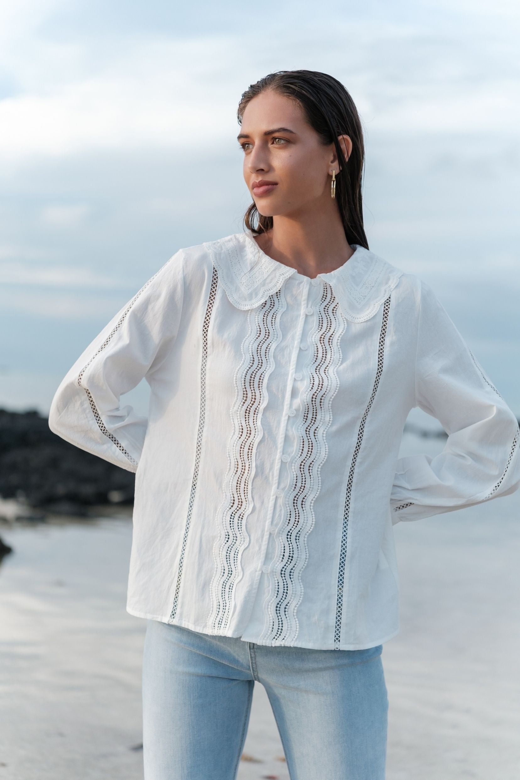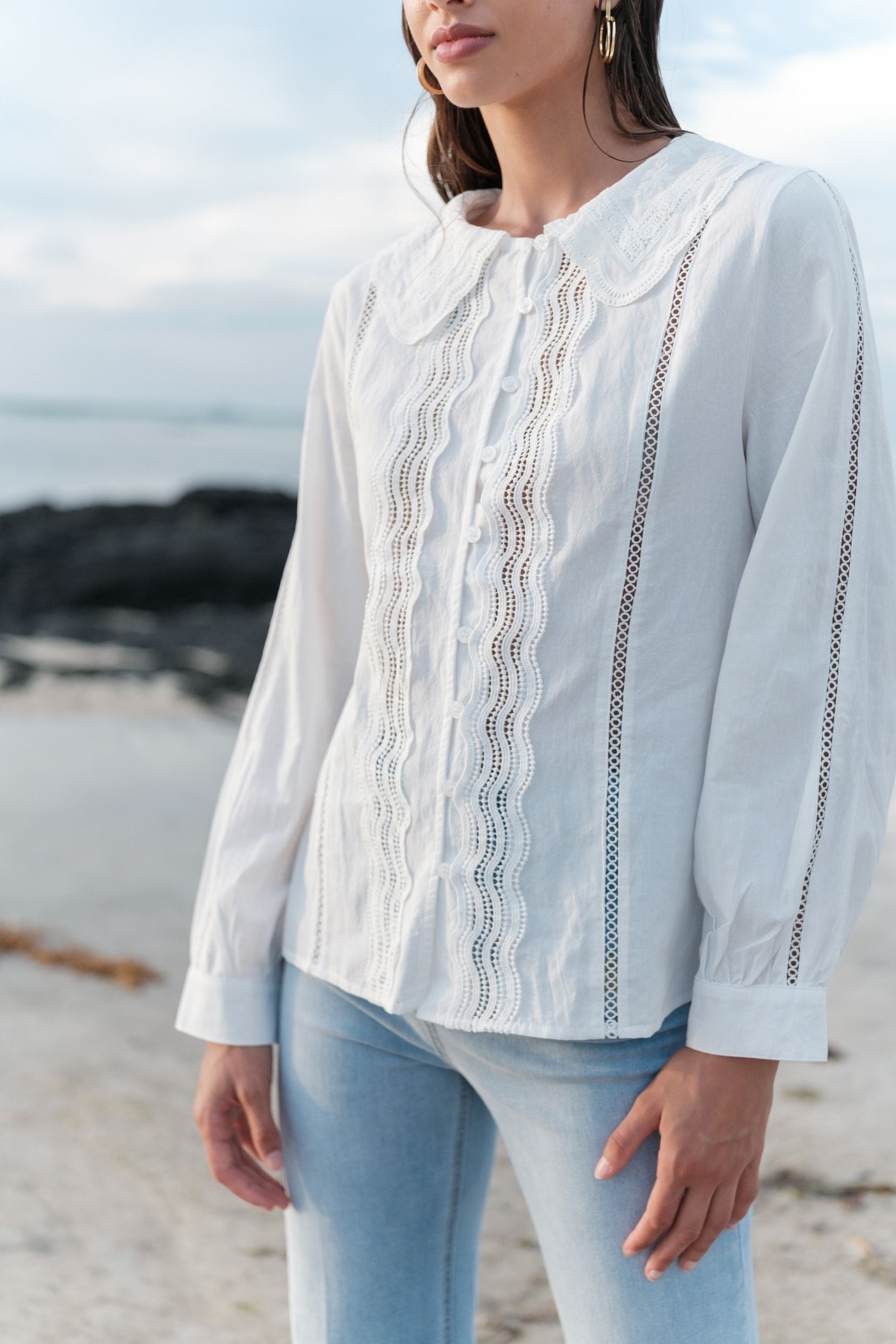 Une chemise romantique au charme rétro, facile à porter au quotidien.
