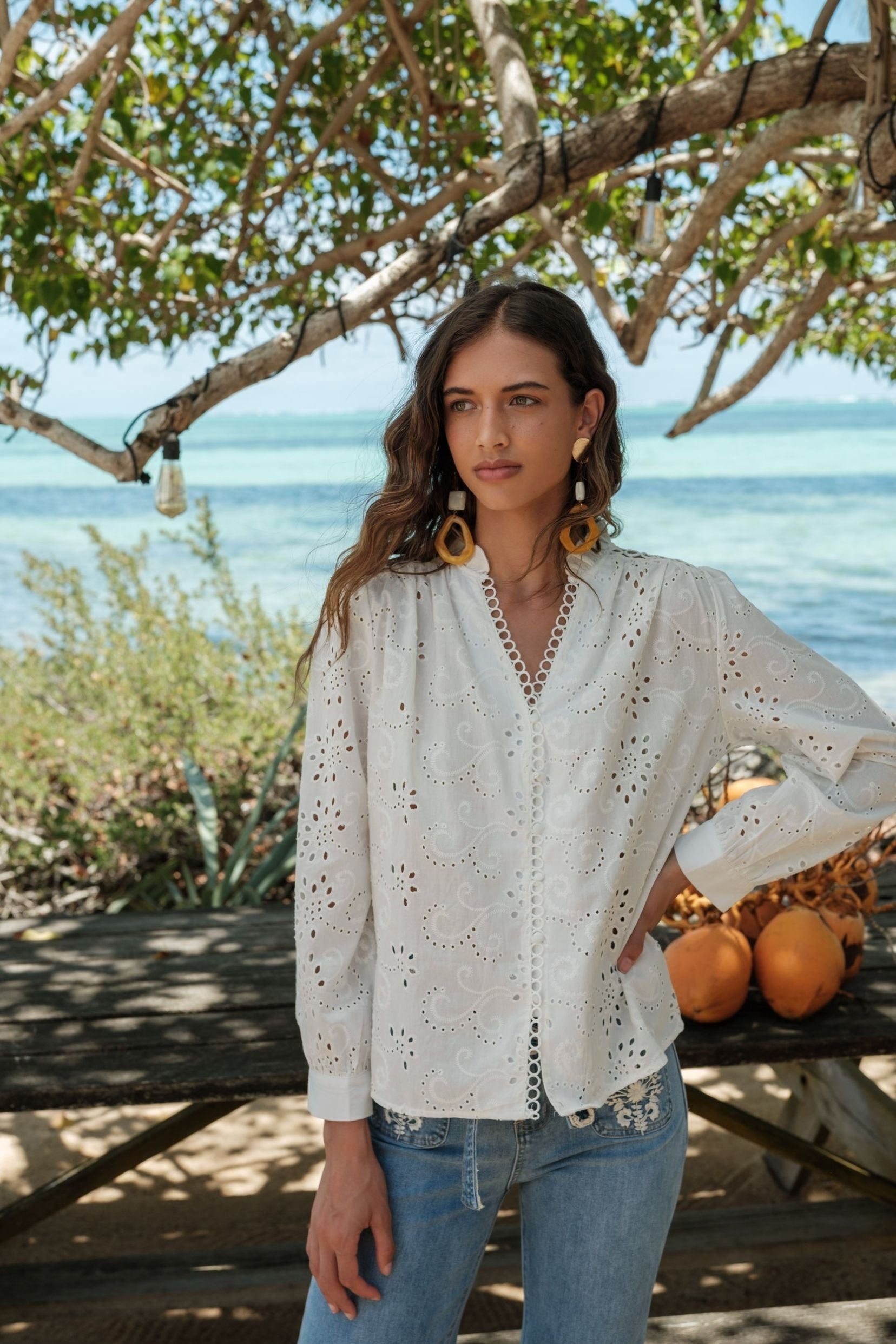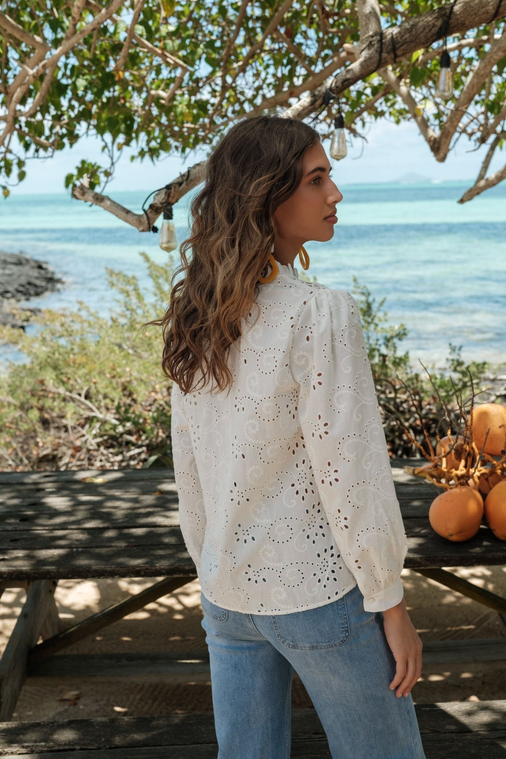 Vibe : Douce, solaire et féminine. Une chemise lumineuse au charme naturel, entre fraîcheur et élégance.