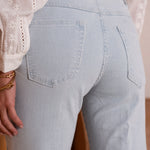 Style : Un denim rayé à la coupe flare qui offre un effet irrésistiblement confortable et résolument summer.