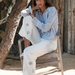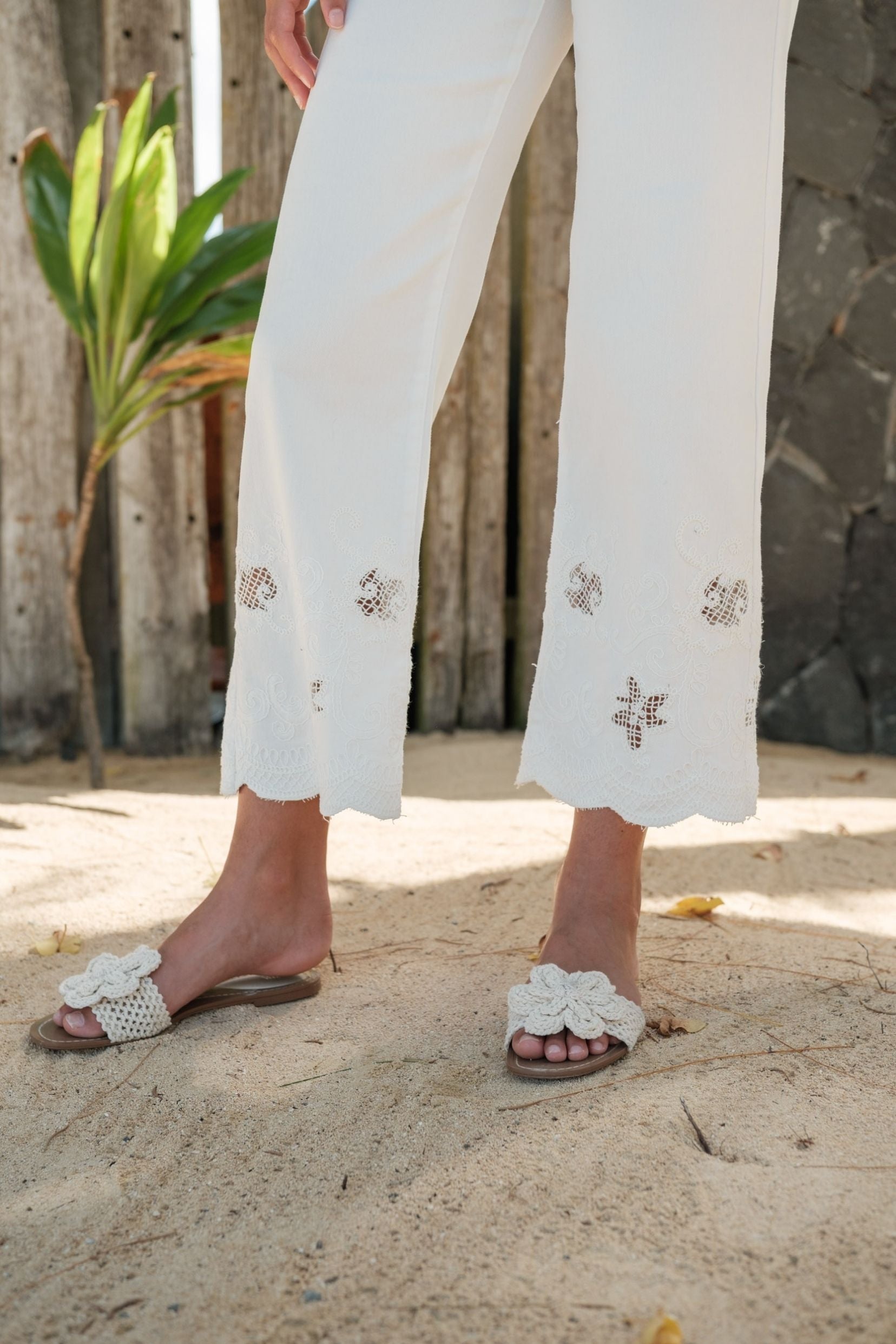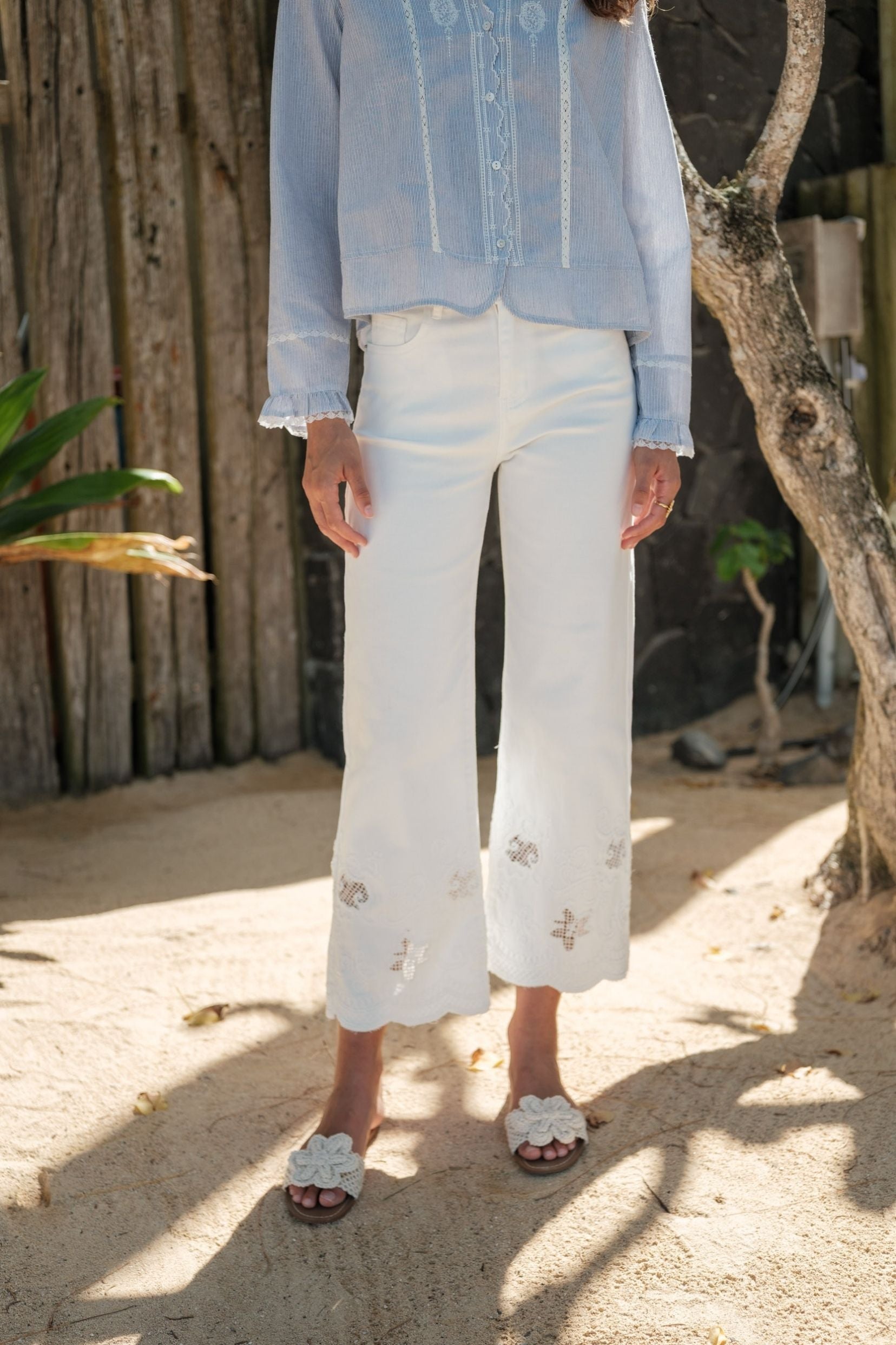 Un pantalon écru chic et aérien, à l’allure bohème et sophistiquée, parfait pour la belle saison.