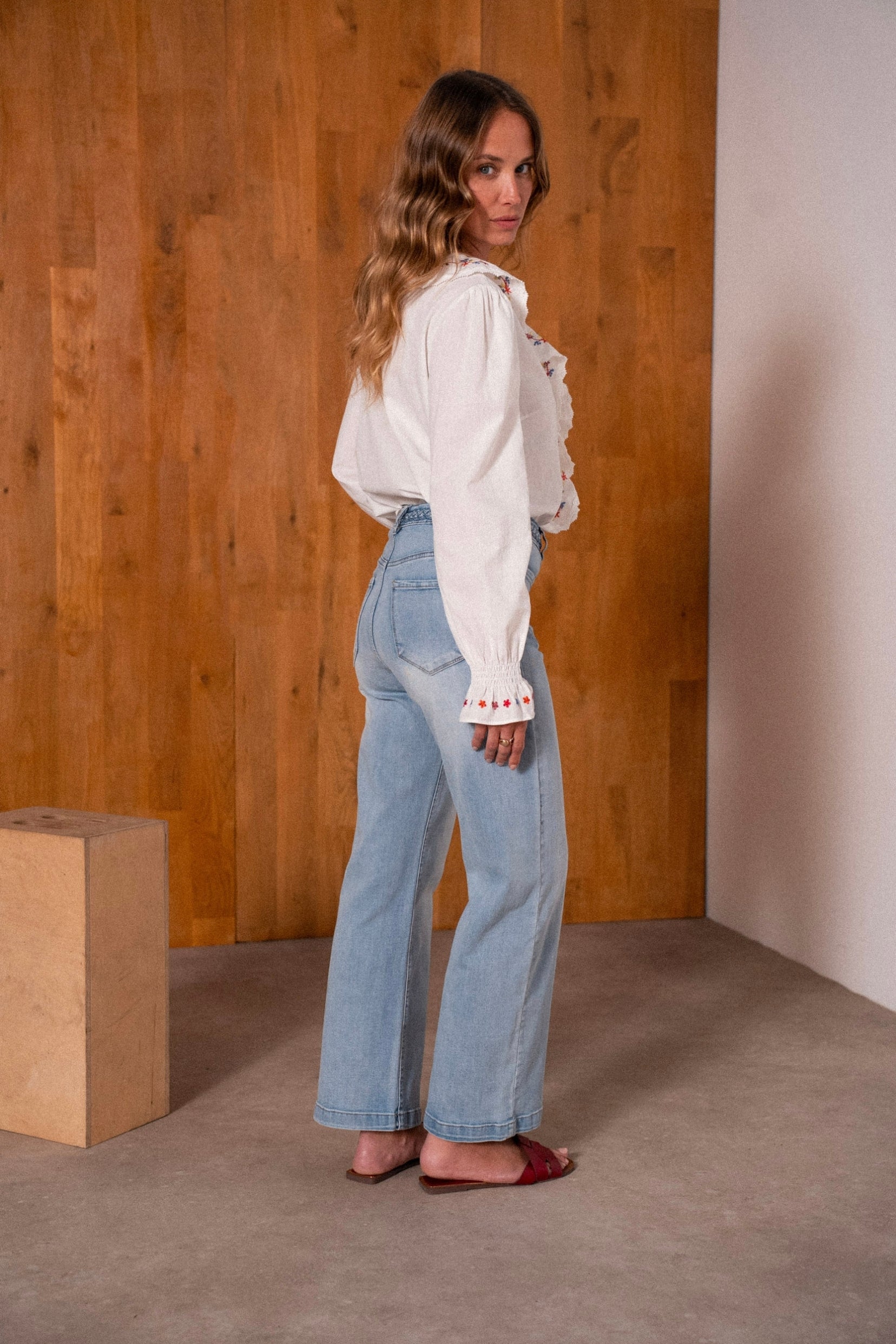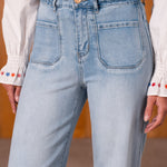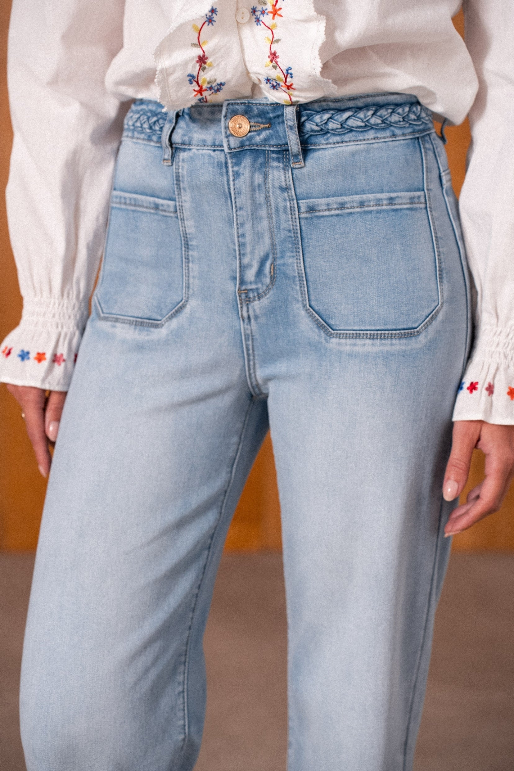 Détails : Poches plaquées à l’avant et ceinture hanche ornée d’un détail de tresse en denim ton sur ton.