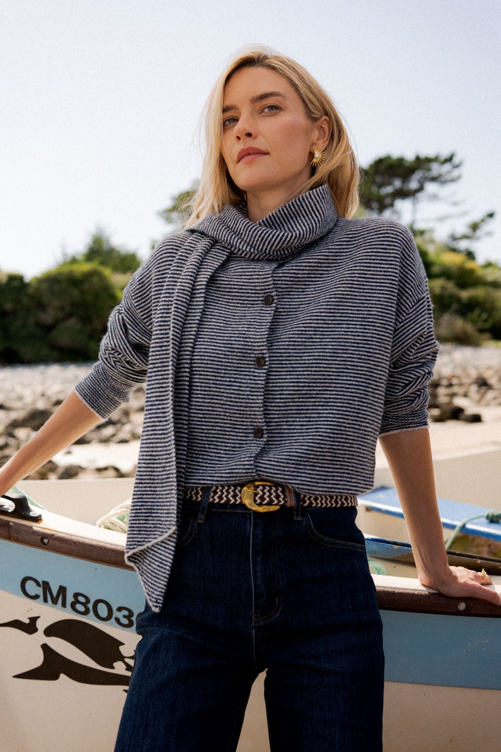 Coupe : Taille haute, jambe large et souple qui allonge la silhouette et flatte toutes les morphologies.