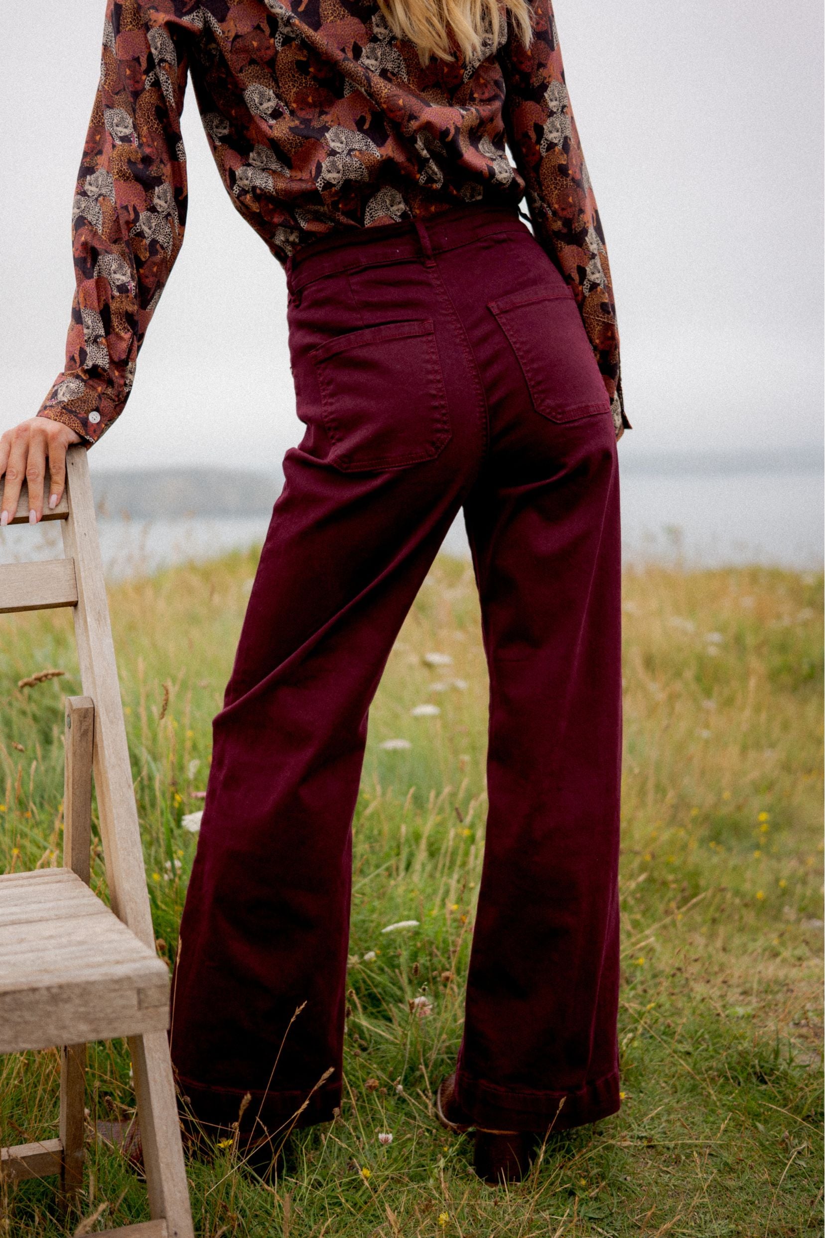 Coupe : Taille haute, jambe large et fluide pour une allure structurée mais décontractée.