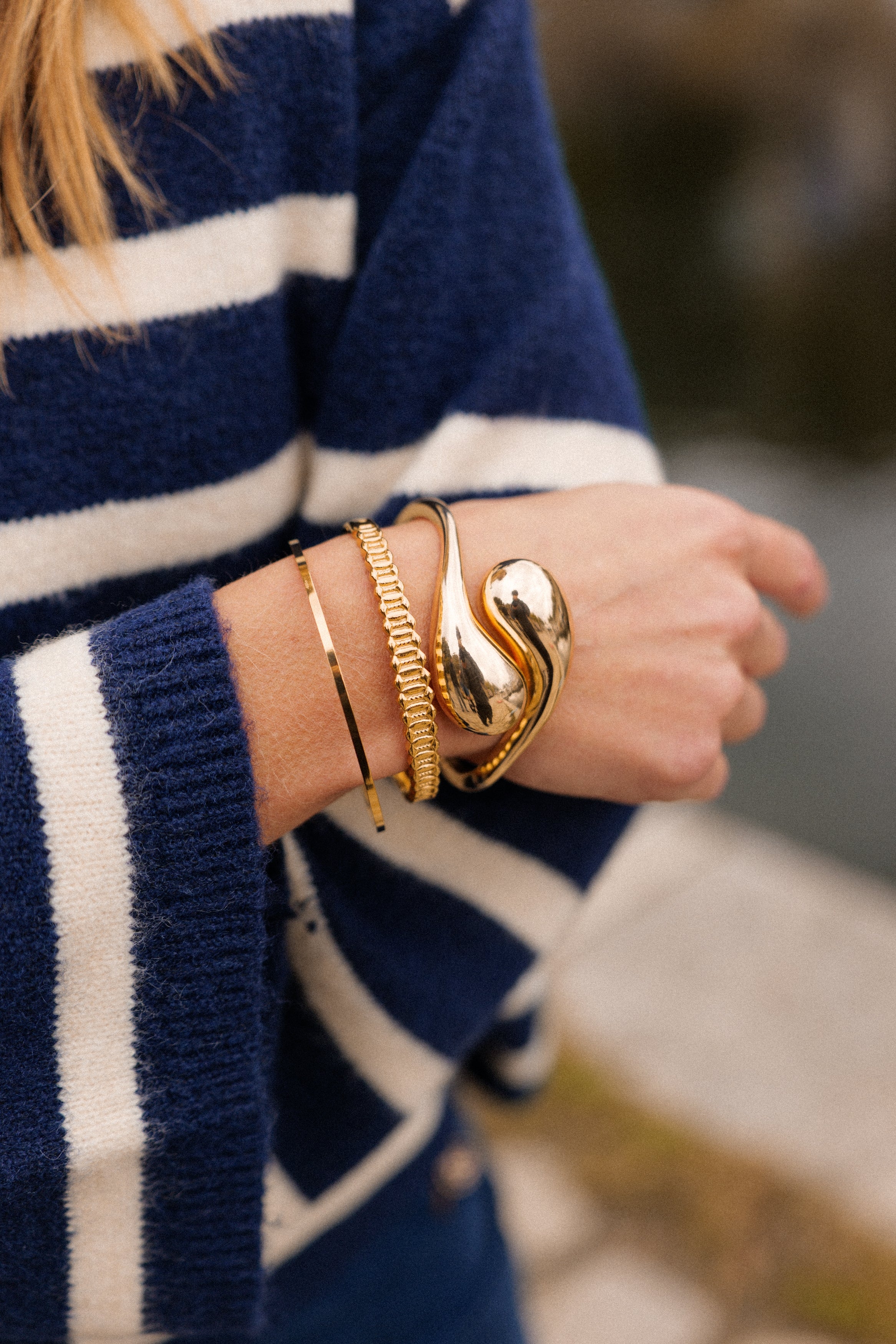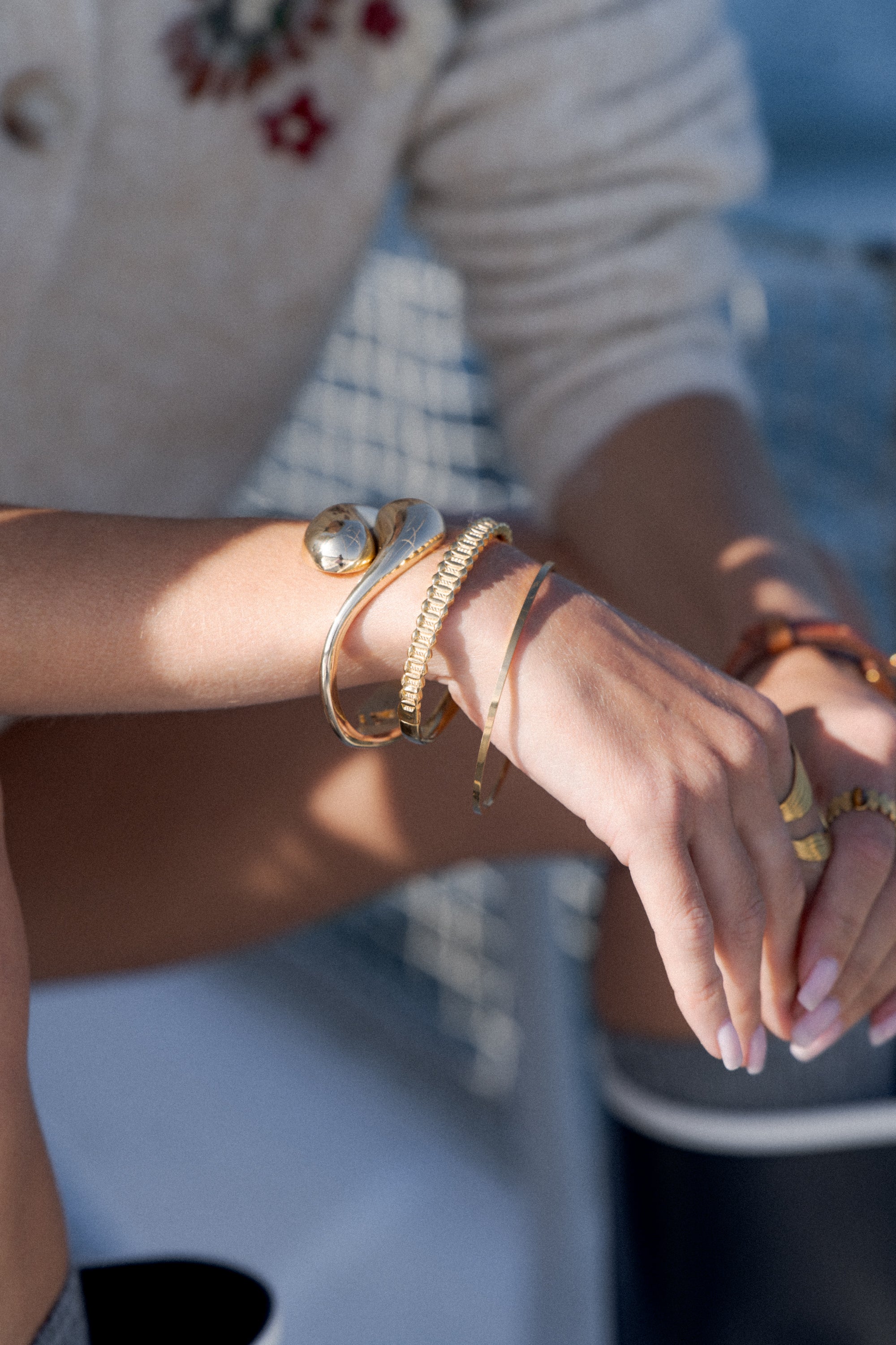 Vibe : L’art du mix & match — une pile dorée qui joue avec la lumière et affirme votre style à chaque geste