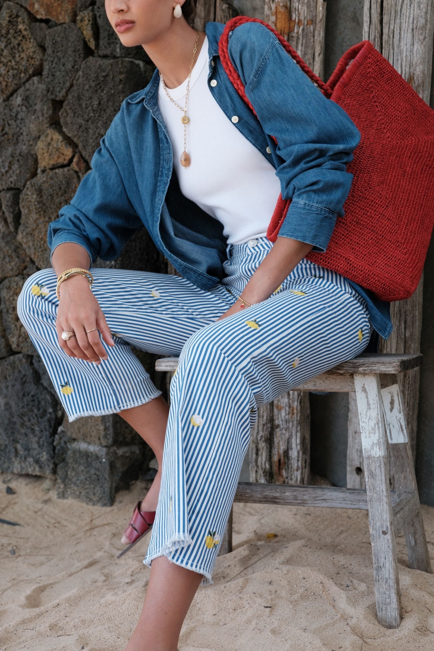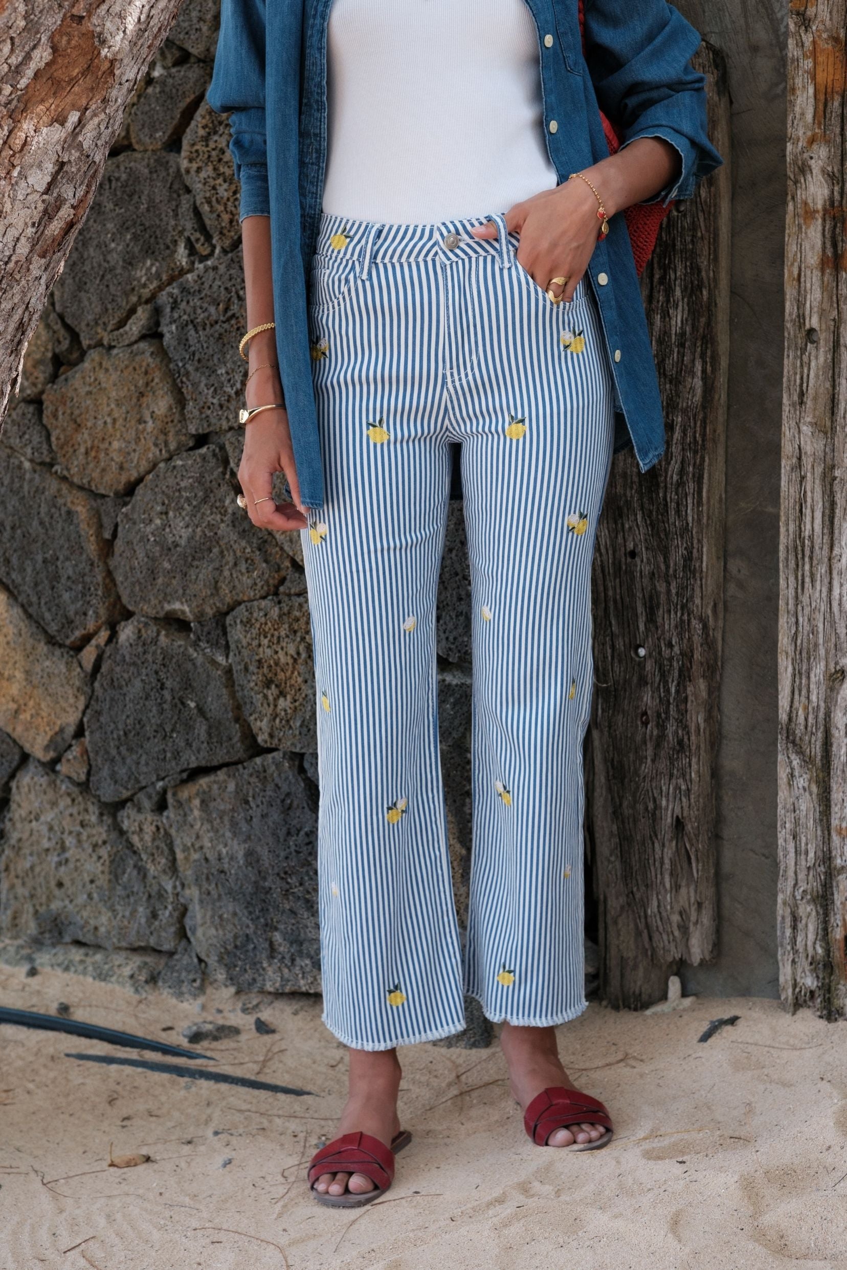 Un jean lumineux qui sent l’été et la dolce vita.