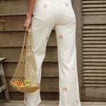 Détails : Denim écru ponctué de citrons brodés au point de croix.