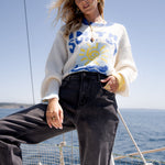 Détails : Jean wide leg avec une coupe ample et élégante, sublimé par des broderies en jeu de point de croix.