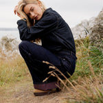 Détails : Détails carreaux à l’intérieur des revers et de la poche gousset, denim brut de belle tenue, coutures apparentes esprit workwear.