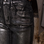 Jeans de corte reto, com acabamento em franjas na parte inferior das pernas.