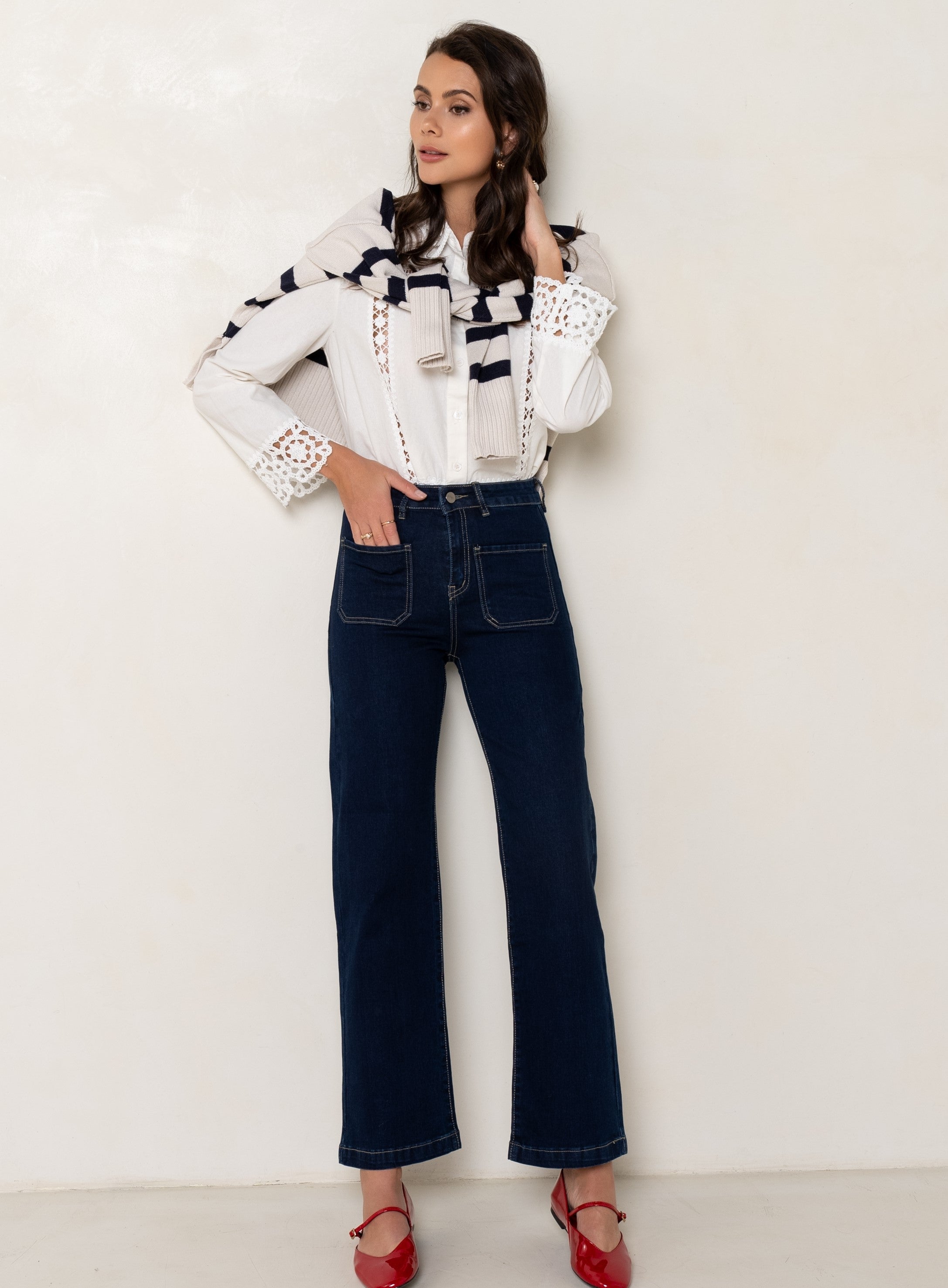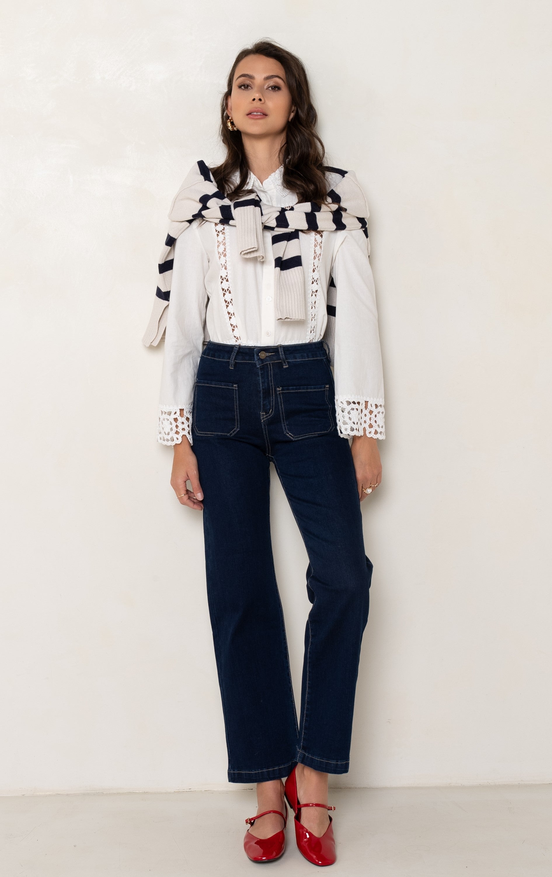 Os nossos jeans Carla preferidos, com os seus dois bolsos bem posicionados, alongam perfeitamente a silhueta, criando um look elegante e largo.