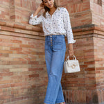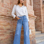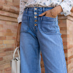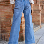 Ce jean wide large ultra-casual, avec ses deux poches plaquées avant, ses boutons en denim or, ses passants pour ceinture et ses deux poches arrière, offre une coupe flatteuse qui allonge la silhouette tout en apportant confort et style. Un modèle parfait pour un look décontracté et élégant.