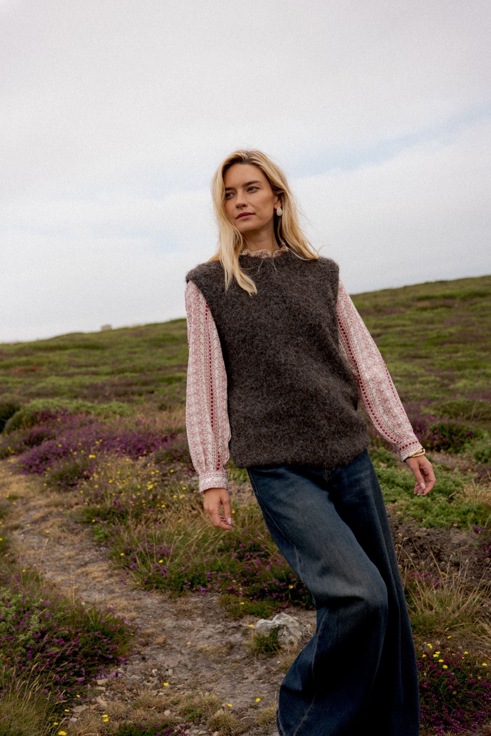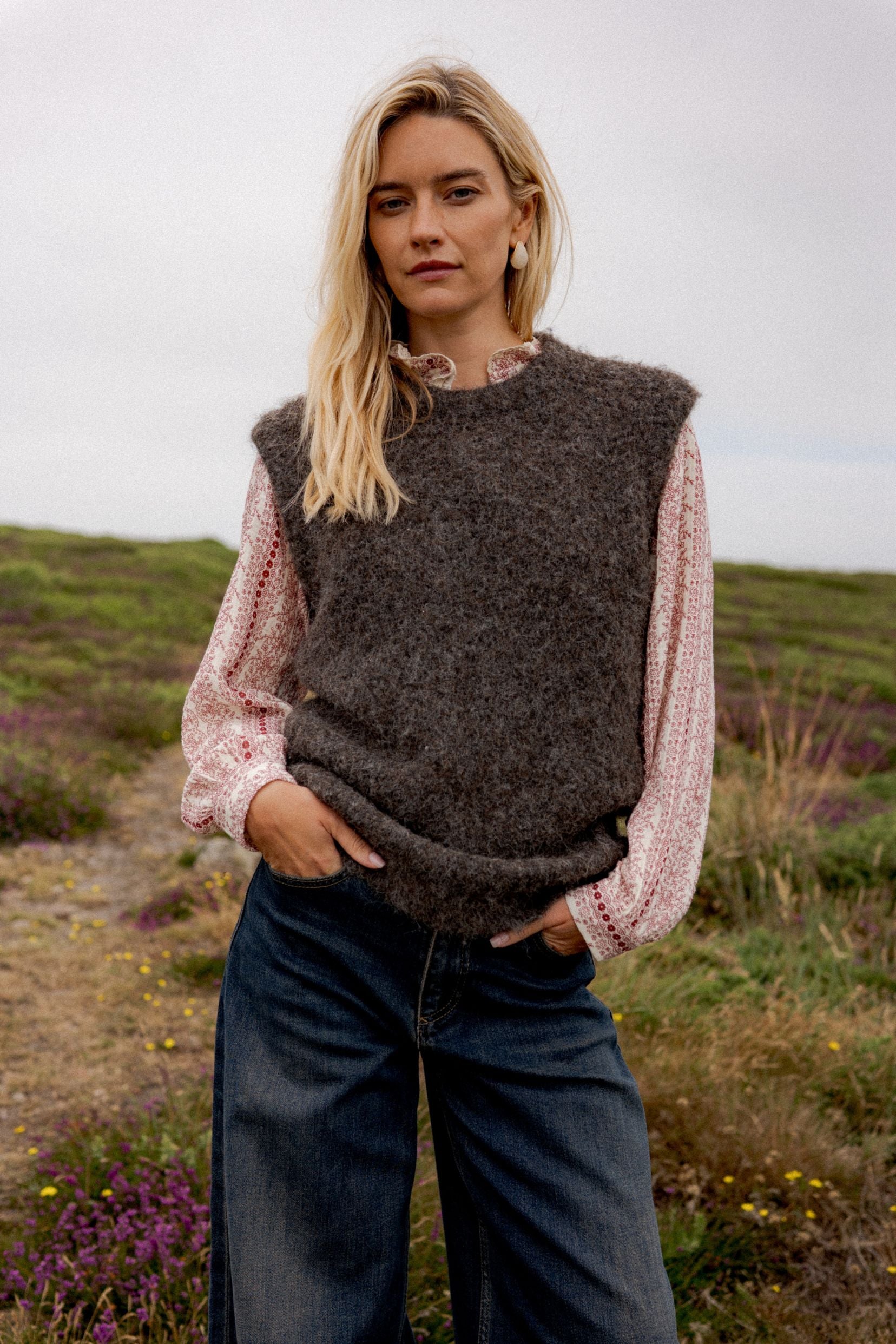 Vibe : Minimaliste et chaleureux — le pull sans manches parfait pour upgrader vos looks de mi-saison, avec un petit twist vintage.
